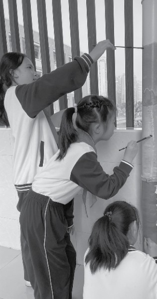 记者 刘春霞 藏在校园各个角落里的水管你注意过吗?最近,上海市宝山区南大实验学校的校园里,一根根水管在师生们的眼中刷起了“存在感”——在学校壁画社同学们的“妙手”操作下,原本光秃秃的水管成为了让人惊艳的“艺术品”。 今年9月,南大实验学校在办学一年后搬入了全新的校园,如何创建校园文化、增强学生的归属感成为老师们思考的重点。“艺术来源于生活,我申请开设壁画社,希望能用我的壁画特长带领学生亲手装点校园。”南大实验学校“艺术创想”壁画社负责老师唐恩觉说道。 虽然学校目前只有六、七两个年级,但壁画社很快就招募到了20多名学生,并在唐老师的带领下,作为每周的少先队活动课程之一开始学习创作。在学校里进行壁画创作,首先选取哪个地方呢?唐老师和学生们把目光瞄向了一根根藏在角落的水管。 选择水管、创意构思、动手创作……不到两个月的时间,原本光秃秃的“水管们”就穿上了新衣服,成为一幅幅作品:《黄昏》《梦》《树》《小清新》…… “在我们的眼里,世界就像这幅画一样五彩斑斓,我们就是一块块多彩的方块,看似远离但又紧紧联系在一起。”作品《构成》创作小组的学生这样解释自己的创作理念。《黄昏》创作小组的学生们则表示,有一天放学,透过学校的木窗看到了美轮美奂的落日,于是就将这景色分享给同学和老师们,“希望大家看到这幅画,都能放松下来。” 谈起过去两个月社团活动的收获,六(3)班胡畅然同学感慨说:“可以用自己的双手把校园装点得五彩斑斓,也可以用自己的画为同学和老师们带来快乐和好心情,我感到非常满足。” “壁画社刚刚起步,这次在水管上的创作,其实只是一次‘社团作业’,但孩子们的创意让人很惊艳。”南大实验学校德育负责人鲍蕴旖老师介绍说,这次活动不但参与其中的学生因为作品被喜爱而感到自豪,其他同学也都兴致很高,“他们会在课间讨论自己最喜欢的是哪根水管。”鲍老师表示,这个过程中,孩子们都成了校园“小主人”。 唐恩觉老师坦言,通过对壁画的学习实践,不仅培养了学生对艺术的兴趣爱好,提高艺术素养、发展艺术特长,更是让学生参与到了校园文化的创建中,增强了学生的归属感。 鲍蕴旖老师透露,后续校园文化创建过程中,有很多创意、想法都想让学生来参与,“比如树木牌的提示语、学校告示牌等都可以让学生来设计。”而除了水管改造计划,“艺术创想”壁画社还将挑战在室外大楼梯上作画,把办学理念中的“光”元素融入其中,尽情发挥追光少年的创造力与想象力,“这不仅会让学生在艺术创作能力上有所提高,也是非常有德育价值的。”