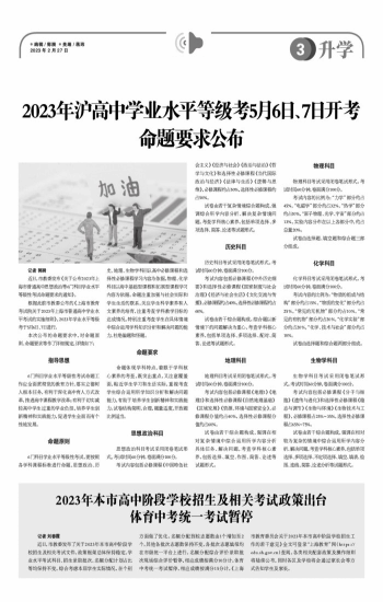 2023年沪高中学业水平等级考5月6日、7日开考 命题要求公布