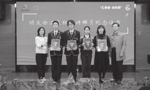 记者 范彦萍 为了让青少年讲好中国故事,推进文化自信,由徐汇区委宣传部、市委宣传部机关团委、徐汇团区委、上海市南洋中学联合举办的2023年徐汇区青少年红色讲解员招募近日启动,并开展了“汇青春•进校园”党的创新理论宣讲志愿实践。 “汇青春”青年讲师团团长、徐汇团区委副书记杨有宗以《从三组照片看为什么要走中国式现代化道路》为题,通过分享自己在新华社上海分社的工作经历,向同学们展现了独特的文化传统、独特的历史命运、独特的国情对中国选择自身发展道路的重要影响。“汇青春”青年讲师团成员、市委宣传部机关青年理论宣讲志愿服务队队员、市委宣传部审计室周理想,通过“汲取优秀传统文化智慧,推进文化自信自强”的主题宣讲,鼓励同学们坚定文化自信,以自己的青春热血建设社会主义文化强国。 听完两位老师的宣讲,南洋中学高二(8)班的应庭筠表示自己受益匪浅。“联系到周老师讲到的‘汲取优秀传统文化智慧,推进文化自信自强’,我联想到我们学校在团委活动室创立了红色读书角,希望以此呼吁同学们通过阅读红色经典,把革命先烈保留下来的红色文化、红色精神和优秀传统文化智慧传递下去。相信我们这一代学生,会在耳濡目染下,不断增强我们作为华夏儿女的文化自信。我也希望未来能成为徐汇青年理论宣讲志愿服务队的一员,讲好中国故事,推进文化自信。” 杨有宗老师的宣讲也让高二(7)班的张睿扬感受颇丰,“中国式现代化是中国共产党领导的社会主义现代化,与我们每位青年学子都有着密切关系,实现中国式现代化,我们青年一代更要勇担责任、砥砺奋斗。上学期,我参与了《五育未来说》的节目直播,在节目中,向大家介绍了我们寻访南洋党组织的‘童年’的过程。在这其中,我自己也感动于这些早期南洋学子的初心。我想说,我们肩负时代重任,也必将坚定不移听党话、跟党走,不忘爱国初心,秉承南洋‘知行’精神,做有理想、敢担当、能吃苦、肯奋斗的新时代好青年!” 据了解,以南洋中学为起点,“汇青春·进校园”党的创新理论宣讲志愿实践活动将从3月起全面走进徐汇区的大中小学,将党的好声音送到青年身边,让面向青年讲道理的过程更接地气、更有温度,让青春与时代同频共振。
