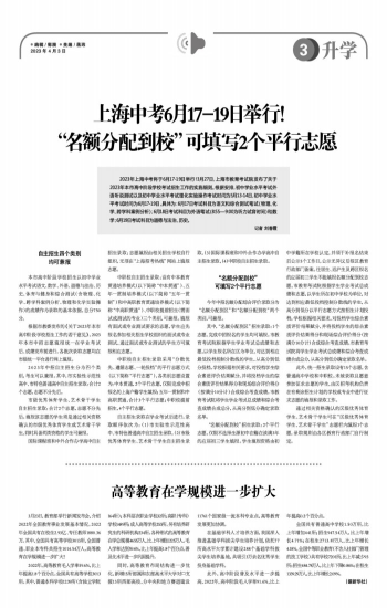 上海中考6月17-19日举行!“名额分配到校”可填写2个平行志愿