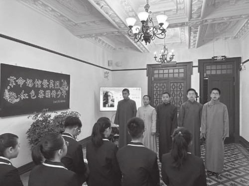 记者 范彦萍 杨力佳 文/图 又是一年清明时,上海的青少年纷纷走进红色场馆,参与以“清明祭英烈”为主题的教育活动,铭记革命历史,传承英烈精神。 一场沉浸式党史学习“大课” 来自徐汇区63所中小学校的118名徐汇区“新时代好少年”走进龙华烈士陵园,在初心之地沉浸式地上了一堂学习贯彻党的二十大精神、深化党史学习教育的“大课”。 在龙华烈士陵园主广场,百名新时代好少年排列成整齐方队,伫立在烈士纪念碑前,参加了庄严而隆重的升旗仪式、祭扫仪式。当鲜艳的五星红旗伴随着《中华人民共和国国歌》冉冉升起,同学们面向国旗敬礼,感恩国旗下成长。在祭扫仪式上,礼兵抬护着花篮,以庄严的仪式向革命烈士献上了代表青少年敬献的花篮——寄语“革命烈士永垂不朽”,同学们一起向革命烈士三鞠躬默哀,礼敬先烈先辈,寄托缅怀之情。 来自龙华烈士纪念馆的红色讲师李岩为大家带来了一堂《爱我中华 初心探秘——时空珍宝》红色绘本分享会。林育南、俞秀松、龙大道、茅丽瑛的故事,永不消逝的电波李白的故事等让同学们学习先烈勇敢机智和坚持不懈的品质,也让他们感悟到革命先烈为国家敢作为、为民族敢担当的高尚情操。 三名新时代好少年走上宣讲舞台,携手启动2023年徐汇区未成年人网上“清明祭英烈”主题活动。 龙华烈士纪念馆讲解员汪盈带领同学们走进遗址区,讲解国民党淞沪警备司令部所在地的历史沿革以及相关情况。同学们在讲解员的导引下一边聆听一边参观,身影伴随脚步迈向园区纵深,通过实地参观、寻访,探索龙华烈士陵园中雕塑背后的故事。 演绎烈士人生直面铮铮誓言 “这是我第四次来到这里,不断了解这座红色场馆,不断走进这段红色历史,也是我不断成长的过程。在今天这个特殊的日子里,在左联五烈士战斗过的地方,我想说,他们永远活在我们的心中!”杨国麟同学说道。4月4日上午,虹口区教育学院附属中学的同学们来到中国左翼作家联盟会址纪念馆,开展“革命场馆祭英烈红色基因传少年——清明红馆祭奠英烈主题活动”。 当天的主题活动首先以短片“回顾红色之旅”为序幕,总结了虹教附中学子开展“红色场馆”系列活动的场景。在第一乐章“礼赞红色精神”中,杨国麟同学和任玥宸同学,通过真切感人的演讲,缅怀先烈的丰功伟绩,礼赞先烈崇高精神。第二乐章“再现英烈风采”,由五名同学演绎“左联五烈士”就义前的感人情景。激昂的台词、动情的表演,引领同学们“穿越”到那段峥嵘岁月中,直面烈士们的铮铮誓言:坚持奋斗,永不放弃,永不言败!第三乐章“少年砥砺奋进”,一声声激昂坚定的“少年强则国强”响彻大厅,由学校武术队的中华功夫扇表演,和着在场的同学《少年中国说》的诵读,生动传递着虹教附中学子传承先烈红色精神、自信走向未来的决心。尾声,全体学生集体诵唱《黄河颂》,将活动推向高潮。 作为冯铿的扮演者,胡圣雁同学说道:“第一次排练的时候,老师、同学就说我和她长得像,我希望自己不光是在外形上像她,更能在精神上像她。冯铿面对敌人的屠刀没有丝毫的畏惧,她身中7弹壮烈牺牲时,年仅24岁。每当想到这么多优秀、年轻的有志青年为了国家富强、民族振兴付出宝贵的生命,我就更加坚定自己向他们学习的决心。”
