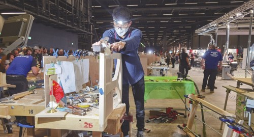 五四青年节前夕,共青团中央、全国青联公布了第27届中国青年五四奖章名单,来自上海的邵茹鹏位列其中。“我的成才之路,普通人也完全可以复制,因为它来自于勤奋、热爱和坚持。”在2022年世界技能大赛特别赛精细木工项目中,当时年仅20岁的邵茹鹏做的榫卯节点处几乎看不出缝隙,为中国队在该项目上实现了金牌“零”的突破,近日接受本报记者专访时,他说,“在国家大力发展职业教育的当下,我也希望自己拿下的荣誉,能改变社会公众对职业教育的传统认知,在新时代诞生更多的技术能手。” 记者 陈宏 热爱大于天赋 2002年出生于安徽亳州的邵茹鹏,成长环境并不算优越。父母来沪务工,将他也带到了上海读书,“成绩不是很好,初中毕业时我爸说,还是得学门吃饭的手艺,我就报考了上海市城市科技学院的建筑工程施工专业。我的想法很朴素,他在工地上工作,我想着能和他一起打拼。” 然而,在学校里,他迅速发现了一个新天地:学校木工基地。这个基地类似兴趣社团性质,主要就是针对世界技能大赛,邵茹鹏觉得很新鲜。通过选拔进基地之后,他才发现自己是彻彻底底的“小白”,连工具是干什么的都不认识,“但这也激发了我强烈的兴趣,每天都在接受新的知识,看到前辈们做的作品,自己渐渐勉强也能做出来了,这种新鲜感和成就感保持了很长的时间,之后我通过了选拔。是天赋吗?可能有一点,但主要还是愿意钻研。” “这个备赛的团队,每天的训练强度都很大。从早8点到晚9点,我们基本都泡在这个训练大楼里,晚上回到宿舍之后,洗完澡躺床上想刷会儿手机的,结果还没刷两下就睡着了——这不单单是身体累,还要考脑力。做一件作品,有很多不同的加工工艺,条条大路通罗马,但你得从中迅速找到最好最优的,要判断要取舍,就比较劳心。”他总是调侃自己,一直以为自己学了个手工艺活儿,“结果发现是脑力劳动的活儿。” 临危不乱的少年 开展世界技能大赛比赛项目的省(市)学校很多,即使一路突围进入国家集训队,还要遭遇10进5、5进1的最残酷淘汰。在国家集训队,此前向来顺风顺水的邵茹鹏遭遇到了瓶颈期,“无论怎么做,都不能突破那个分数了,非常痛苦,想着别人寒暑假都能出去玩,我这是在干什么啊?” 教练找专家来给他做心理辅导。他一开始以为专家会让他放空,结果专家的建议是“更严格一点”,“继续做题!”邵茹鹏没做那个撂挑子不干的少年,结果还真磨出了坚韧的性格,在他正式比赛时,发挥了大作用! “比赛真的是一波三折。大家都是会按照组委会赛前给的指导题来训练,正式赛题以前惯例是会在此基础上变30%,这次变了90%;另外,临比赛前突然通知画图圆规突然要1米7的,我们国际快递根本来不及,只能现场临时用木条绑在原来1.5米的圆规上‘加长’,接头的地方总是会松开,导致圆画不好,还得注意擦得非常干净,否则扣分。”这些意外变故,让他在画图环节严重超时。 得益于平时的严格训练和强大自信心,邵茹鹏做到了临危不乱。赛事要求榫卯接口缝隙不能超过0.2毫米,而他平时都是按照0.1毫米的要求来要求自己的,对自己的“狠”,终于在关键时刻发挥了巨大作用,他在后面的环节迅速赶上,抢回了时间,也拿到了高分,从来自16个国家和地区的选手中脱颖而出,为我国精细木工项目斩获首枚金牌。 留校任教的“大师兄” 夺冠后,被誉为“当代鲁班”的邵茹鹏获得了众多的荣誉,除了中国青年五四奖章,他还被评为全国技术能手、上海市技术能手等,并通过人才引进落户上海。母校也邀请年仅21岁的他留校任教,担任项目教练。 这些荣誉并没有冲昏邵茹鹏的头脑,他说学无止境:“以前我们使用的各种木工工具的设计师曾来给我们做过讲座,我们才发现除了最基本的锯断功能之外,这些工具原来还有那么多待开发的功能!” 他认为这些荣誉,更大的意义其实是能改变社会对职业教育的观念,“以前可能初中毕业就直接走上社会开始养家糊口了,现在会想着,其实换一条赛道也会很精彩。” 精细木工并不只存在于世界性比赛中,它在现实中的应用场景也在逐渐增多:大到古建筑、古文物的修复,小到高端家具定制,它都能派上大用场。“我们等于是把这项传统工艺做到了极致,这也能带动行业标准的提升、工艺的改进,比如现在我们要求榫卯缝隙不要超过0.2毫米,在现实中其实不超过0.4毫米就已经很好了,有精细木工的普及,行业会发展得更好。”他说。 最欣慰的是,在他成功“出圈”后,他已经遇到了很多亲朋好友来咨询,“小孩进技校会不会也有好的发展?”“我会跟他们说,只要勤奋、坚持,就肯定会有好的发展,新的时代,对我们年轻人来说,就是会有更多新的机会。”邵茹鹏说。