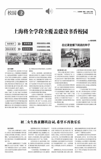 记者 范彦萍 “丑奴儿青山含颦问晓风,东君住否,东君住否,锦水芙蓉御城柳。何辞花前长病酒,斜阳易瘦,斜阳易瘦,人间风月不簪愁。”这首词是读完柳永的生平后,上海同大实验学校初二学生陆慜霏有感而发挥笔写下的。 因为喜欢,她断断续续写下了90多篇翻填习作。在这个已经习惯了“快餐式”“碎片式”网络阅读方式的当下,这个女孩用自己的方式坚守自己的爱好,延续对中华优秀传统文化的传承。 陆慜霏熟读《宋词三百首》数遍,背下其中近百首词。采访的时候,聊着聊着一些名句便从她嘴里脱口而出。她透露说,自己背词不同于一般人的死记硬背,而是设身处地代入作者的感受,多读几遍有时候就能背出来,她将之归功于“走心”的结果。 在所有的词人中,她对李清照、辛弃疾、苏轼等人的作品更有共鸣。比如辛弃疾的“醉里挑灯看剑,梦回吹角连营”,比如苏轼的“何妨吟啸且徐行”。 “人有悲欢离合,月有阴晴圆缺”是苏轼的名句。陆慜霏喜欢这位大词人豪放的作词风格,也欣赏他豁达的处事态度。但在看了苏轼的生平后,她才恍然大悟,“原来,以豁达闻名于词坛的苏东坡,他的月亮却从未圆过。历经坎坷后仍能保有豁达,殊为不易。又如辛弃疾梦断关河,剑横青山,声声连营吹角中是他豪放而又婉约的故园情怀。他们把爱恨平生诉写在明月里,又似是邀明月同浮一大白……这样的豪情让人肃然起敬,诗词字字,读来唇齿含香。” 陆慜霏回忆说,其实自己对诗词的喜爱是受到了妈妈的启蒙。读幼儿园时,妈妈每晚在她睡前都会放古诗词的音频,她听着听着就会读,会读便产生了好奇,小小的心里种下了了解传统文化的种子。 她会将填得比较好的作品用PS软件制作成海报,发布在一些文学类社交账号里。她也喜欢由古诗词改编成现代流行乐的歌曲,比如《琵琶行》《阿房宫赋》等。在发布作品的过程中,她在网上结识了一些有相同兴趣的诗词爱好者,与他们畅谈自己的感想。未来,她希望报考历史系,打下更扎实的基础,将古诗词分享给更多的年轻人。