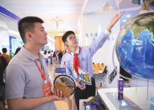 2022年8月4日,上海首颗科普教育卫星——闵行少年星在太原卫星发射中心成功发射。闵行学子利用这颗属于自己的科普卫星开展了与闵行少年星相关的课题研究。一年来,“闵行少年星”已在轨道正常运行了5775圈,工作状态良好,数据通信一切正常。截至2023年8月29日,闵行已有100多位学生参与闵行少年星课题申报,其中21个课题被评为闵行少年星系列优质课题。而在新中国74周年华诞之际,这群追星少年纷纷向祖国告白。 记者 郭漪 综合报道 集结学生精彩创意 “闵行少年星”计划自启动之初便集结了学生们的精彩创意。闵行区教育局携手上海航天技术研究院,组织闵行学子共同参与卫星设计、研制、搭载、发射等航天系列科学研究与工程实践。 在“闵行少年星”发射一周年回顾展示活动现场,“闵行少年星”碳排放监测首图发布,图片显示了位于土库曼斯坦的一处甲烷排放点烟云。 “少年星”搭载“温室气体监测”载荷,就是源于星河湾双语学校和闵行中学的两位中学生的提案。通过空间可见橙红高光谱相机与空间短波红外高光谱相机,“闵行少年星”可以获取地球表面温室气体排放情况等影像资料。 据此,同学们可以对温室气体排放源进行监测,参与低碳行动。因而“闵行少年星”还有个昵称叫作“零碳小先锋”。 在太空不断赋能 “闵行少年星”是怎么绕地球转的?什么时候经过闵行上空?巡天、探地的照片是在什么情况下拍摄的?……说起“闵行少年星”,同学们充满了好奇,脑海里的问题一个接着一个。令人欣喜的是,在上海航天八院的支持下,闵行少年星轨道运行演示学习装置亮相了。 七宝中学陆韵琦同学向大家详细介绍了学习装置。该装置是按照实际结构与功能布局进行1:7.2等比缩小制作的闵行少年星模型,可以看到探地相机、巡天相机和太空礼物在卫星中的位置。巡天拍摄的相机就藏在卫星的侧面,对着地球的“大眼睛”则是探地相机,工程师还设计了一束对地灯光,可模拟演示相机的拍摄范围,并在卫星动态运行的情况下模拟相机的拍摄功能。此外,该装置还保存了从学生中征集过来的300多条太空天籁之声和300多幅太空创意画作品。 一年来,“闵行少年星”在太空不断赋能,提升闵行学子探索航天的兴趣、研究课题与创新实践的能力。同学们通过开展课题研究,探索结合卫星遥感技术、数据分析、模型预测等方法,结合现有的卫星数据和地面观测数据,进行气候变化的监测和课题研究。 向着星辰大海表白祖国 截至今年7月,闵行教育局已在区内征集到了171个相关课题,广大闵行学子开展了系列课题研究活动,并培育出了21个区级重点课题。 而在国庆节期间,闵行的这些少年星团队成员,纷纷向祖国告白,展示向着星辰大海奋斗的风采。 “站在我们向卫星发送指令的天线旁,在航天闵行的这片沃土,很自豪自己的课题设想,能够通过这天线发送指令。”古美高级中学李黄洁同学参与的课题是《应用离子推进技术进行闵行少年星轨道调整的探索与实践》,她表示,航天梦连着中国梦。 闵行中学东校施博奕同学参与的课题是《新能源在“闵行少年星”上的应用研究》,他表白道:“通过研究新能源在闵行少年星的应用,我深刻感悟到祖国的伟大。作为祖国的一分子,我为祖国在新能源领域取得的成就感到自豪。” “在研究‘少年星’课题的过程中,我在不断地开拓自己的知识边界,少年星在浩荡的太空中遨游,它是我们闵行,也是祖国的骄傲。它承载着我们的梦想,像中秋的月亮一样,会一直为闵行,为祖国发光发亮。”上海星河湾双语学校胡焱南同学说。 >>>部分“少年星”课题展示 《分布式光伏发电对上海生态环境可持续发展的价值研究》 通过对企业和居民小区安装光伏的案例,对其中的碳排数据和电费进行数据比对分析,以期提出合理规划分布式光伏在城市规划中的建设,提高公众对分布式光伏的认识和接受度。 《用于闵行少年星观测时间预测的手机简易App开发》 这个程序根据提前设置的地面经纬度信息,进行空间几何计算,得到卫星的方位角、俯仰角和直线距离,再根据卫星过境预报算法,可算出适合观测闵行少年星的开始时间与结束时间。 《通过卫星观察冰川面积及海平面反映气候变化》 针对全球气候变化使冰川大量融化使北极熊难以觅食、北极熊数量下降的现象,通过对比不同时期海平面和冰川面积,反映气候变化,使我们科学认识与把握气候变化规律,推进缓解气候变化的工作。 《测定太阳辐射研究太阳活动》 这个研究可以通过相机来观测太阳大气层的变化,以及通过卫星遥感等技术来反映出太阳辐射,以实现对太阳活动的监测。