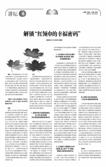 杨浦区控江二村小学分校 倪雯婷 摘要:上海市杨浦区控江二村小学是上海市红旗大队,在奋力开创新时代少先队工作新局面的征程上,切实落实“双减”要求,积极打造基层小学的“15分钟少先队幸福圈”。学校少工委以解锁“红领巾的幸福密码”为目标,创建“社区、学校、家庭”的线上线下“云”联建的共育机制。在塑造幸福方向、融合幸福乐点、搭建幸福平台、创造幸福体验四个方面,探索创新活动模式、完善少先队校本品牌、提升学校少先队员的幸福童年。 关键词:少先队光荣感教育;少先队队会课的设计;少先队“云”联建;“同心圆”解锁幸福“密码” 背景: 党的十八大以来,习近平总书记站在党和国家事业发展全局的高度,围绕“培养什么人、怎样培养人、为谁培养人”这一根本问题,强调全面加强党对教育工作的领导。在2021年建党百年之际,中央办公厅、国务院办公厅下发了《关于进一步减轻义务教育阶段学生作业负担和校外培训负担的意见》。由此明确了“双减”的根本宗旨在于促进少年儿童的全面、健康、幸福的成长。以一名基层小学的大队辅导员的视角来看,热爱少先队事业,时刻铭记要将少年儿童政治启蒙和价值观塑造作为主责主业。通过喜闻乐见通俗易懂的方式解读少先队的幸福教育是一名少先队工作者的职责所在。从少先队历史、少先队章程、少先队理论出发,扎实开展学校少先队员思想教育。大队围绕中国共产党建党百年、“十四五”发展、“党的二十大”……这些具有历史意义的节点,学习《关于全面加强新时代少先队工作的意见》精神,坚持把培养社会主义建设者和接班人作为根本任务,开展脉络清晰的“红领巾的幸福密码”解锁之旅是少先队工作的重中之重。 正文: 培养德智体美劳全面发展的社会主义建设者和接班人,一直是我们党育人的根本任务。时代在发展,新时代的少年儿童是实现第一个百年奋斗目标的经历者、见证者,更是实现第二个百年奋斗目标、建设社会主义现代化强国的生力军。当代少年儿童的幸福体验应该与时代发展的脉搏紧紧相连,2021年中国共产党建党100周年,2022年党的二十大胜利召开,2023年是“十四五”建设关键之年。因此教育引导广大少先队员听党的话、跟党走,增强少先队员光荣感;党团带队,奏响少年儿童的“人生三部曲”;结合“双减”背景,三全育人打造“红领巾的专属幸福”品牌;是开启学校“红领巾的幸福密码”探索之旅的关键所在。 一、解锁传承红色基因的路径,为少先队政治启蒙和价值观塑造指明幸福方向 贯彻习近平总书记关于少年儿童和少先队工作的重要论述,为新时代好少年的政治启蒙指引了幸福的方向。要开展少先队思想教育,首先要指明红色基因传承的路径,为少先队政治启蒙和价值观塑造指明幸福方向。学校大队部以争“党史学习特色章”为目标,创造性设计少先队学党史“六个一”争章行动。大中队辅导员、校外辅导员、家长志愿者化身为讲师携手全体队员充分挖掘红色资源,寻访红色印记。无论是家校携手开展的“百年百章”探访路线,还是由大队部领衔,聘请校外辅导员,设计的“夜幕里的风语者”红色电波之路,都是“党”字强本色、“红”字亮底色、“沪”字显特色。在解锁过程中,队长们注册化身为红领巾讲解员,将短视频整理成系列,分享参观视频,交流实践感悟。家校社协同助力少先队管理,学校队员传承红色基因的路径始终保持畅通,传承红色基因的幸福辐射圈也越来越大。 二、多元融合少先队队会课的设计和整理,依托党建、团建、队建凝聚幸福点 队部积极践行《上海市团市委关于进一步加强上海少先队课程建设的要求》在明确少先队队会课的时间、授课辅导员基础上,突破传统主题队会思想品德课的形式,有效整合少先队教育资源。将每周一次的少先队活动与学校信息特色与探究型课程设置相结合、探索少先队队会课有效实施的新途径。形成以践行社会主义核心价值观为核心、以信息化手段为媒介、以少先队特有的组织形式为载体的少先队队会课方案集上下两册。“雏鹰争章板块”“场馆探究板块”“中华精粹板块”“领巾飘扬板块”。通过进阶式学习、活动、体验,获得少先队队知识、提高品德素养、丰富探究型课程内容和探究式学习经历。 学校的队会课程与党史特色章相契合,全国“两会”期间,人民日报新媒体隆重推出建党百年主题歌曲MV《少年》,队部抓住契机,设计《少年》系列活动。少先队队会课上,带领队长们剖析“少年”画面,重温百年历程;午间十分钟,队员跟随“少年”来跳韵律操,升旗仪式上,队员诵歌词,立志向。全队上下为《少年》MV而沸腾,赤诚的少年之心也由此而萌发。在学校少工委的支持下,队部协调组织,党建带团建,团建带队建。以“红领巾永远心向党-分批入队增荣誉”为主题,制定“分批入队方案”,采用自评、互评、他评、辅导员评价等民主程序,开展争章队会课、分批颁发入队通知书,隆重举办统一入队仪式。每一位少年儿童都真切感受到走好“人生三部曲”,红领巾心向党的组织归属感和幸福感。在少先队队会课的设计过程中,党、团员老师录制微党课。队员聆听微党课,寻找身边的先锋老师、各行各业的先锋家长。在党的引领下,以团带队,人人有策划,队队有表现,知史爱国、薪火相传