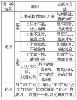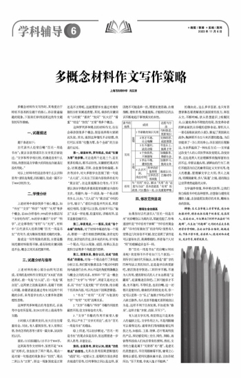 上海市向明中学 肖友清 多概念材料作文写作时,其难度在于特别不容易抓住题干的核心,存在普遍偏题的现象。下面我们举例说明这类作文题型的写作策略。 一、试题描述 题干表述如下: 古代读书人经常自嘲“百无一用是书生”;莫言在获得诺贝尔文学奖后曾说过:“文学和科学相比较,的确是没有什么用处,我想但是文学最大的用处也许就是它没有用处。” 对以上材料中的说法你有什么认识和思考?请自选角度,自拟题目,完成一篇不少于800字的作文。 二、学情分析 上述材料中牵涉到多个核心概念,如“书生”“文学”“科学”“有用”“无用”等多个概念,在436分样卷中,99%的学生都在写“文学的作用”,1%的学生撇开“文学”“科学”,泛论事物的“有用”与“无用”,材料中“古代读书人经常自嘲‘百无一用是书生’”的句子,成为集体性视若无睹的对象。 造成这一写作现象的原因,主要是整体把握材料做得不够,进而导致关键词筛选不全,概念之间关系把握不明。 三、试题分析与指导 上述材料的核心部分由两句话组成。采用的是材料作文常见的“XX说”的表述形式。前一句是“古人说”,后一句是“莫言说”。这两家之说孰是孰非,是题干的核心问题。命题者就是通过考生对这两个问题的分析,来考查学生的人文素养和逻辑理性思维。 这种罗列多种观点的考查形式,在高考中也有所呈现。如2022年的上海高考作文题: 小时候人们喜欢发问,长大后往往看重结论。对此,有人感到担忧,有人觉得正常,你有怎样的思考?请写一篇文章,谈谈你的认识。 要求:(1)自拟题目;(2)不少于800字。 这则高考作文材料中,虽然不是“XX说”的形式,但也包含了两个观点。观点一是对前一句描述的现象表示“担忧”,观点二则认为“正常”。那这一现象到底是正常还是不正常呢,这就需要学生通过有理有据的分析来阐述清楚。其间,牵涉的关键词有“小时候”“喜欢”“发问”“长大后”“看重”“结论”“担忧”“正常”等多个概念。 这种罗列多种观点的材料作文,往往会牵涉到很多个概念,很容易弄得大家顾此失彼。其实,遇到这种情况不必惊慌,我们可以采取“化整为零,各个击破”的方法进行应对。 第一,细读材料,罗列观点,完成“化整为零”的步骤。无论是两个还是三个,甚至更多的观点,都不必担忧,关键要把观点列全,切莫遗漏。否则,会直接导致偏题。本次考试中,对大多数学生忽视了前一句是“古人说”,只关注了后面内容较多的长句“莫言说”。在这里提醒各位考生,千万不要以语言字数的多寡来简单地断定内容的主次。考题中,每一个词语,每一个标点都有含义,比如,“古人说”与“莫言说”中间的分号,暗示“;”前后内容是并列关系,两者地位相同,位置可以互换,但却不可以“偏正”关系一样处理,轻重有别,详略有异,甚至直接忽略不计。 第二,审视观点,一一落实,完成“各个击破”的构思。对于材料中阐述的每一个观点,都要一一进行细致思辨质疑,该肯定的肯定,该否定的否定,该补充的补充。针对每一个观点,可以从现象、成因、结果以及态度和方法等多个角度进行思辨。 第三,理清关系,整合认识,完成“自我观点”的提炼。对每一个观点进行了多角度分析之后,我们要对散落在各个观点中相同的内涵进行合并,并从外延的角度明确概念与概念之间的关系。材料中“书”这一概念包含了“文学”与“科学”,两者又是对立关系,而“书生”又是支配“书”的对象,结合题干的具体内容,可以列出如下因果逻辑链: 1.“书生”“有用”“无用”与他读的“书”“有用”“无用”因果关系。 2.“文学”书籍与“科学”书籍作用虽然截然不同,但文学却也有大用。 3.“文学”书籍的作用不被常人接受,所以产生了“文学无用论”,成为“百无一用是书生”的理由。 综上所述,可以初步断定,“百无一用是书生”的观点似是而非,但还需要进一步深入思考,丰富论证。 第四,全面思考,深化认知,提高“自我观点”的理性。尤其在思考因果逻辑链的“成因”时,一定要从主、客观两方面去多层次地进行思考,任何事物之所以是这样,原因绝不可能是单一的,需要拓宽思路,合理推断,理性思考,慎重提炼,才能使自己的认识不断地趋于事物真实的本性。 四、修改范例呈现 雕琢生命的崇高 如果你对古代读书人“百无一用是书生”的自嘲信以为真的话,那就危险了。你难道没听说“书中自有千钟粟”“书中自有黄金屋”“书中自有颜如玉”的诗句吗?虽然有人觉得这几句诗俗不可耐,但它说明了读书是可以富裕生活、美满婚姻的。再者每个人对“用”的理解追求也不一样。 那“百无一用是书生”的自嘲从何而来呢?我觉得不外乎有如下几个原因:一则所学已被时代所淘汰,如果是“茴”字的四种写法之类的知识,还是趁早自我更新吧,要活到老学到老;二则所学不精,不堪为人所用,爱因斯坦式的人才永远都是“宝藏哥”,赶紧精进自我吧;三则可能怀才不遇,生不逢时,不用叹息,也别自嘲,这一切都只是暂时的,朝南的向阳枝处处有,你一定可以觅得一方“乐土”施展才华的;四则个人缺乏修养,为人处世不能毫无原则地自以为是,这样不利于自身发展,不如赶快“修身”,这样才能“齐家、治国、平天下”。 有人说文学无用,我觉得这只是某些人的偏狭之见。文学作用之大,不是用眼睛可