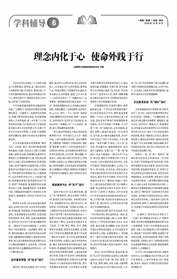 上海师范大学康城实验学校校长 时俊 习近平总书记在党的二十大报告中提出了许多新观点、新举措,是一篇马克思主义的纲领性文献。作为校长,要真正使二十大报告精神落到实处,就必须将理念内化于心,使命外践于行,紧密结合学校工作实际,办好家门口的好学校。 中华民族是重视德育和志趣高尚的民族。“立德树人”是我国历代教育共同遵循的理念。“立德树人”,是教育的本质要求,明确了教育的根本使命,符合教育规律和人才培养规律,进一步丰富了人才培养的深刻内涵。当今我国正处于开放的国际环境与多元文化的背景之中,而青少年学生又正处在世界观、人生观、价值观形成的关键时刻,德育为先更具有必要性和紧迫性。 作为学校教育就必须要强调“德育为先”,在安排、落实、践行的时候要在继承的基础上创新。把社会主义核心价值体系融入教育全过程,把理想信念教育作为教育核心价值观的重中之重,把弘扬以爱国主义为核心的民族精神和以改革创新为核心的时代精神作为重要内容,引导和教育学生自觉践行社会主义核心价值体系。学校德育的发展格局可以从课程德育、社会实践和学校文化三方面进行建构;要把德育渗透于教育教学的各个环节,贯穿于学校教育、家庭教育和社会教育的各个方面。创新德育形式,丰富德育内容,不断提高学校德育工作的吸引力和感染力,增强德育工作的针对性和实效性。 教育作为实现人的全面发展的重要途径,必须以学生为本,关注学生的全面发展、和谐发展、持续发展、终身发展和健康成长。在坚持德育为先的同时,全面加强和改进智育、体育、美育。全面实施素质教育,坚持文化知识学习与思想品德修养的统一、理论学习与社会实践的统一、全面发展与个性发展的统一,促进德育、智育、体育、美育有机融合,着力培养学生的社会责任感、创新精神和实践能力,提高学生综合素质,使之成为德智体美全面发展的社会主义建设者和接班人。这些年来,上师大康城实验学校正是遵循着这样的信念,一步一个脚印地走来。 追寻教育梦想 用“信念”践行 曾经有人很有见地地说:有什么样的教育,就会有什么样的未来;有什么样的年轻人,未来就会有什么样的希望。教育是什么?希望在哪里?中国教育学会副会长朱永新认为:好的教育,就是“让人身心统一”,培养学生成为一个“完整的自己”。在他看来,“教育既然是努力地去促进一个人过一种幸福完整的生活,它本身就应该是幸福的、充满乐趣的。”这样的教育,这样的生活,让人记一辈子;一个人一生中有一段享受幸福完整教育生活的体验,值得一生去回忆。这样的经历,甚至不亚于走向社会,走向生活的一种磨炼;对一个人的成长、成熟、成才,都是颇有益处的事。 那么通过何种途径才能达到这样的教育呢?作为一所年轻的公立九年一贯制学校,上师大康城实验学校一直在不断思考、不断探索、不断前行。学校在校训“道者智 德者慧”的指引下,将艺体教育定位于学校的办学特色,充分挖掘艺体教育在培养学生发现自我、认识世界、陶冶情操、丰盈身心,完善人格方面的正向作用,以开放的视野、包容的心态,积极实施开放办学策略,寻求和挖掘引入社会优质的艺体教育资源,以前瞻的办学理念、独特的办学思路来引领学校的内涵建设,提升学校的办学品质。 搭建教育平台 用“实干”践行 坚持开放办学,优化教育资源。建立了由“课程教师、家长志愿者、专家名师”组成的艺体专业团队。学校现分别有艺术、体育教师各12位,他们专业扎实、特色明显,分别承担着一项校队的训练。为了挖掘各行各业家长的资源优势,学校在艺体方面开展了家长导师助教活动——邀请了30多位家长志愿者走进课堂,并向他们颁发了聘书。这些家长志愿者开设了法语、木兰拳、管乐、剪纸、武术、围棋等等艺体课程,深受学生的喜爱,有效地补充了学校艺体课程资源,提供了学生更广阔的多元选择。此外学校还积极邀请专家名师到校,如著名儿童文学作家肖定丽、陶艺名家柯和根老师到校进行讲座和指导;特邀越南交响乐团指挥家童光荣担任校民乐团常任指挥,上海民族乐团多位专家、区青少年活动中心资深教师担任民乐声部指导教师,长期对学生进行指导培训;与上海幸运星足球俱乐部、闵行区纵腾体育俱乐部、小世界棋艺社等联手进行体教结合培育体育后备人才。通过领域互融、资源整合、专家引领,将艺体教育大平台积极打造成了全方位的“学生成长平台”,促进学生心灵、素养、情操等整体人格的生成与升华,共同推动我校的艺体教育工作实现跨越式发展。 丰富课程活动,打造多元舞台。教育就是要让每一个学生在学校都拥有属于自己的活动空间与平台。教育就是要兼顾每一个学生,让他不会觉得自己是个多余者。因此学校严格执行国家课程标准的规定,开齐开足国家三类课程,大力开展“三团一社”创建活动。过去谈康城,在绝大多数人脑海中就是单一的足球项目。近年来,艺术教育也蓬勃发展。至2017年先后成立了音乐之声合唱社、月牙儿舞蹈社、“染者无疆”扎染社、“乐之风”民乐团、快乐陶艺社、滴滴答鼓号队、金色童年儿童画社、艺趣工坊、“一版一颜”版画社、绘本与插画社、“爱木乐风”打击乐、管乐团、趣味十字绣等20多个学生艺术社团。这些丰富