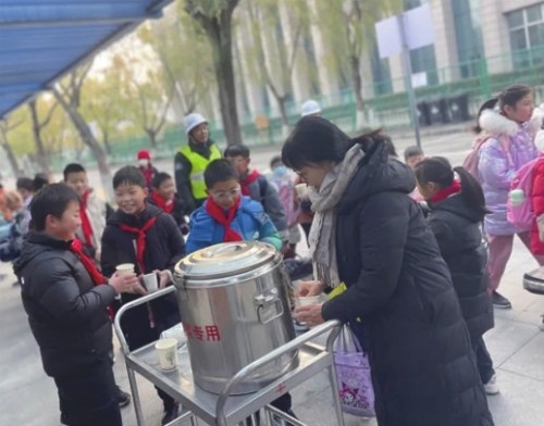 前不久,一场凶猛的寒潮来袭,申城开启“速冻”模式,气温从20多摄氏度陡降到最低零下7摄氏度。沪上各个学校陆续开展了一系列“暖冬”措施,师生们齐心协力、抗击严寒,共同营造温暖、有爱、安全的校园环境。 记者 曹莹 短暂告别校服 姜茶成标配 寒潮来临,上海不少学校明确表示,学生可以不穿校服上学。穿上暖暖的羽绒服和其他保暖服装,与校服短暂“告别”,是学校防寒护暖的第一步。 据了解,暖呼呼的热粥、甜甜的红糖姜茶几乎是学校发射暖心攻势的“标配”。12月21日早晨7:38,户外气温达到零下5摄氏度。宝山区求真中学北校校长陈明宏站在校门口,邀请几位刚刚踏入校园的学生品尝学校提前准备好的菜粥和姜茶。 面对寒潮,上海市教委发布提醒,请同学们上学、放学路上,防寒保暖一定做足。为了让孩子们在寒冷的冬晨中感受到些许温暖,上海市松江区泗泾小学紧急启动御寒保暖措施,在校门口准备了几大桶红糖姜茶,老师们冒着寒潮低温为进入校门的同学递上一杯暖暖的姜茶。有同学在日记中写道:“要问学校的味道,那一定是学校的姜茶了。它在寒冷的冬晨,带来一丝温暖;在你索然无味的口腔中,带来一点甜。今天早上进校门时,我拿了一杯姜茶,刚拿到时,我那冰冷的手掌中马上便传来了一丝温暖。入口,姜与糖的味道在几秒钟的时间里在我的口腔里翻滚,这味道令我终生难忘。” 室外“寒冷教育” 室内热饮暖心 这么冷的天,体育课就停了吧?不!室外活动不能少。 12月21日下午,虹口区曲阳第四小学的操场上,同学们在老师的带领下,晒着太阳、迎着寒风蛇形跑。 在长宁区适存小学,体育老师带领着同学们跳起活力十足的冬日热身操,增强身体素质的同时,也让他们以饱满的精神迎接新一天的学习。课间,同学们一股脑儿跑出教室,在楼宇间和“野孩子乐园”“适佳加油站”里尽情释放能量。攀岩、跳格子、踢毽子…… 12月21日,全天气温都在零摄氏度以下,杭州路第一小学的老师提早进入校园,开启空调,等待着同学们的到来。 操场上,同学们依然勇敢地上着室外体育课,接受“寒冷教育”,磨炼意志力。在体育老师的号令下,同学们用运动抵御“冰冻”,进行趣味跑步、伸展练习,强身健体。体育课后,学校贴心地为同学们准备了可口的冬季暖胃热饮。“老师,我要再来一碗!”“汤真是太好喝了!”同学们纷纷表示。 后勤未雨绸缪 排查用水设施 在寒潮来临前夕,静安区彭浦新村第一小学后勤部门未雨绸缪,对教学楼屋顶水箱、生活水管、户外水龙头和阀门等设施设备提前做好了保暖防护措施。对移动雨棚进行了固定,将校园户外盆栽绿化统一移至室内区域。对教工车棚电瓶车充电和办公室插座拖线板全面排查,杜绝用电隐患。 12月21日一大早,学校防寒防冻安全领导小组就启动了防范寒潮预案。学生到校后无需在校门口排队,直接进入教室。班主任、护导老师提前到岗,确保学生安全。后勤保障处对走廊直饮水水温进行了调整,确保学生的热水供应。学校食堂也认真做好饭菜的保温,让学生能吃上热气腾腾的午餐。 为灾区孩子募集冬衣 甘肃地震灾情牵动众人的心。由于灾区地处高海拔区域,天气寒冷,急需御寒物资。 寒冬里,长宁区天山第一小学的孩子们不忘灾区,想给灾区孩子们送上温暖。 “那就做一次冬衣众筹。”在上海市新联会委员、长宁区政协委员张书嘉的倡议下,学校众筹并捐赠了约三箱、近百件冬衣。 上外苏河湾学校也联系上海市慈善基金会静安分会,将善款13814.4元,全部捐给静安驰援甘肃等地区抗震救灾专项行动定向基金,用于受灾地区的紧急救援、受灾群众的生活救助、救援队伍的御寒保障等相关工作。