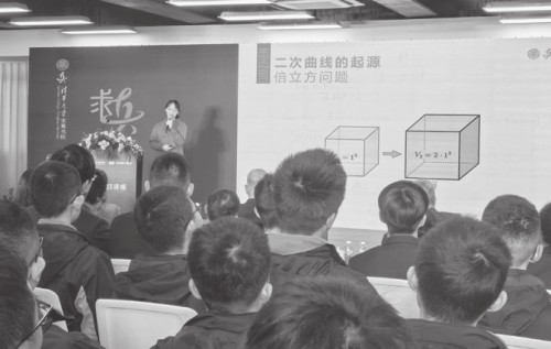 记者 刘春霞/文、图 “古希腊的数学家在研究倍立方体问题时引入了二次曲线,17世纪解析几何的创立解决了二次曲线分类问题并揭示了圆锥曲线和二次曲线的联系……”1月1日下午,清华大学求真书院2022级丘成桐数学科学领军人才培养计划学生洪怡琳,给来自复旦附中、华东师大二附中、上海中学、交大附中、上海市实验学校等9所初高中喜爱数学的学生讲起了“二次曲线”。而这场“求真游目讲座”,也让怀揣热爱数学之心的中学生收获满满。 带领中学生了解数学历史 领略数学之美 来自广东广州的洪怡琳,现为清华大学求真书院2022级丘成桐数学科学领军人才培养计划学生,曾参加首届丘成桐中学生女子数学竞赛获铜奖,并获清华大学2023年度综合优秀奖。在主题为“从二次曲线谈起”的报告中,她给学弟学妹介绍了二次曲线的历史和分类,并尝试阐述其与现代数学与应用数学的美妙联系。 除了洪怡琳同学的报告,清华大学丘成桐数学科学中心的包承龙老师也为同学们带来了一场“浅谈大学数学之线性代数”的报告,而著名数学家、清华大学讲席教授、求真书院院长、丘成桐数学科学中心主任丘成桐先生不但给孩子们讲解了数学,还与大家现场进行了交流。 2020年底,经教育部批准,清华大学推出“丘成桐数学科学领军人才培养计划”,每年面向全球招收百名优秀中学生,采用本博衔接模式,为未来数学及相关领域培养领军人才,成功入围的国内学生无需高考即可被单独录取。为保障“数学领军计划”的开展,2021年3月清华大学成立求真书院,由丘成桐担任院长。 求真书院现有三个人才培养项目:一个是面向全球14-18岁年龄段初三至高三学生招生的“3+2+3”八年制的“丘成桐数学科学领军人才培养计划”,一个是面向内地中学招生的四年制本科的“丘成桐英才班”,以及面向全球招生的博士研究生项目。求真书院致力于培养中国科学界的“将才”,引领和带动中国乃至世界数学、理论物理等基础学科领域的发展。 现场中学生感悟深刻 收获满满 13岁的高尚上是华东师大二附中丘成桐少年班的学生,2022年8月“求真游目讲座”第一次来上海时他就现场聆听过,“这一次讲座又让我收获很大,虽然他们讲的一些内容我还不能完全理解,但他们讲的都是我未来会学习到的。”对于未来的学习之路,高尚上也有自己的想法:“以后学习的路还很长,现在还不能下定论,但是我现在秉持的信念和数学的追求是一样的,就是脚踏实地一步一步去接近真理。” 复旦附中高一学生沙泓光也坦言,洪怡琳学姐和包承龙老师的报告,让自己对大学以上数学研究的主体方向和主体内容有了透彻的了解,而丘成桐先生的宏观讲述,则让自己获得了数学研究整体生涯的方向,“这场讲座对我来说是兼学术性和人生研究方向选择的讲座。” 市北初级中学八年级的夏蔚民同学也对数学兴趣浓厚,平时学习中,他经常因为用高等数学的方法证明初等数学的问题而被老师批评,“之前一直不太理解,听完了讲座我明白了老师为什么会因为这个批评我。”夏蔚民说。