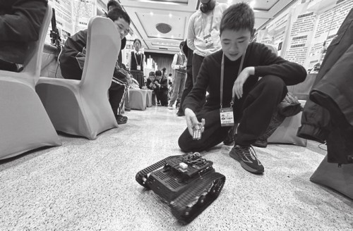 记者 刘晶晶 图 吴恺 “老师,要不要来听一下我们的项目?”日前,上海科学会堂成为了上海青少年展现科学创想的大舞台,第39届上海市青少年科技创新大赛在此举行。今年,这一大赛的申报成果项目数达到15791份,比上年增长11.2%,申报数再创新高。 青少年创新闪耀社会责任 七宝二中的初二学生王睦淳为皮影做了个“走马灯”。2018年他第一次看皮影戏,回老家的时候,爷爷给他做了个可以投射图案的灯笼,告诉他这是“走马灯”,如今制作工艺也快失传了。他就想到,如果把皮影安置到走马灯里,就可以更方便地让大家接触到这两种非遗文化了。 他花了一年的时间自己用透纸做出各类皮影,又将学到的工程原理加以应用,制作了波浪式轨道,通过连杆和滑轮,让皮影可以自由运动,最后做出了“皮影灯”,还配上了音乐。“这就和元宵灯笼一样,能让濒临失传的走马灯有了‘千里马’,也让皮影找到了‘新载体’。”王睦淳说。 除了解决生活中的烦恼,不少青少年的创想发明也充满了对社会弱势群体的关爱。来自大境初级中学的杨咏文带来的“海伦相册”,用乒乓球组合成了可以升降的大行程触点阵列,通过摄像头实时拍摄联动,并结合语音播报,将画面立体呈现出来,让视障者通过触摸就能清晰感知形状特征,也能欣赏到画作。杨咏文告诉记者,她和几个同学一直很关注视障人士,六年级时团队就合作设计了一个能通过语音播报的导盲杖,“我希望能用科技的力量,帮助他们感受到生活的美好。” 评审更注重综合创新素养评价 700项青少年科技创新成果、30项科技辅导员科教创新成果、30项青少年科技实践活动、93幅少年儿童科学幻想绘画和32家优秀组织单位入围终审现场展示。“我们的比赛也体现出一个新的特点,渐渐从评项目转到对青少年的综合评价和创新素质的评价,所以我们今年也新设立了一个‘创新素养和综合素质考察’环节,组织‘多对多’无领导小组讨论,考察参赛学生的创新素养、科学意识、探究能力、合作倾向、综合素质等方面的能力。”市科协科普部副部长富晔告诉记者。 创新素养与综合素质考察采用“三个随机”的考察方式,即专家随机组队、学生随机组队和题目随机抽取。在此条件下,每个考察房间由随机组队的3名考察专家和电脑随机派位的10名学生组成,考察题目则由学生代表随机抽取,同一时间段内的考察题目相同,且当天只能使用一次。参赛学生要在50分钟内完成阅读材料、组内讨论、观点陈述、自由提问等,接受现场考察。“比如有个讨论的主题就是人类为何要探索宇宙,让学生来发散思维,也关注到人类未来的发展方向。”富晔表示,讨论议题都比较开放,也没有标准答案,但从中可以考察学生的思考能力、创新思维能力、表达能力等等,“甚至也可以质疑、反对,正反面都可以,这也是科学精神。” 创新实践的过程比结果更重要 “科学教育不是高科技教育,更不是解题教育,而是培养学生基于各种现象进行研究。万物皆可研究。”大赛同期举办的2024年上海市青少年科技教育校长沙龙上,上海科技馆馆长倪闽景这样表示。他认为,朝着“为创新而学”转向的另一个重要途径,是多样化的行动。 如何让科学教育朝着“为创新而学”转向?倪闽景认为,一个重要途径是加强实践环节,改变看实验、读文本、听故事等传统形式。 “我们学校高一高二的孩子每周都可以参与到100多门拓展性课程、70多个社团中去,每周五下午会有四五个高校的专家教授提供可以选择性的主题讲座。我们鼓励学生开展丰富的社会实践,学生会把他关注的社会热点等生发出问题,学校团队再去帮助孩子逐步从问题转向为课题。”七宝中学校长朱越表示,在研究型课题研究中,学生可以养成非常严谨的科学方法,培养好奇心和责任感,“这对他的未来成长,包括进入高校后的深造都是非常有益的。”