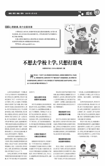 本版特约作者、12355心理咨询师 王慧 开学已经一个多月了,但小明感觉仍旧没有适应,还是整天想着玩手机,作业拖拉,非要拖到半夜,在家长死死“盯”着的状态下才能勉强做完。但小明每天花在玩游戏的时间上却有好几个小时,有时甚至为了玩游戏还找借口生病不去学校,父母为此十分头疼,搞不懂小明究竟怎么了? 让我们先来回答这样一个问题:孩子为什么不喜欢学习?来自美国弗吉尼亚大学的认知心理学博士丹尼尔·T.威林厄姆专门写了一本书叫《为什么学生不喜欢上学》,从大脑的工作原理及结构方式回答了这个问题。原来,玩游戏和学习机制之间的差别非常大。例如:我们在玩游戏过关后,可以获得游戏经验、装备、等级的奖励,而且奖励从来都是立即兑现,这给我们玩游戏带来了极大的快乐。而一旦闯关失败,则不会受到批评、指责,反而会允许玩者不断尝试、重来,这就刺激我们不断反复甚至废寝忘食也要把这关打过。这就是游戏机制的“陷阱”,只有奖励机制,没有惩罚,没有压力,画面还做得相当吸引人、任务设定还挺有趣,所以会让我们沉迷其中,不能自控。 而我们的学习战线则拉得很长,一般要等到期中、期末才能看到自己的学习效果,等到公布成绩后再得到家长的奖励,已经过于长线了,没有及时得到奖励满足。而且一旦没有考好,那来自家长、老师,甚至同伴的压力便会接踵而来,那可真是“压力山大”了。 如何让我们喜欢上学习呢?那就要学着使用游戏的机制来提升学习的兴趣,有了学习的兴趣,学习也就变得乐在其中了。 制定合理学习任务 获取学习成功感受 我们可以根据自己的实际情况来制定学习任务,如这学期要比上学期提升几名或几分;如把要解决的难题,分成几个步骤解答,只要做出了几步,达到了自己的目标任务,就给自己一个及时的奖励。例如去电影院看部自己心仪的电影,等等。及时反馈的机制,给予了我们信心,有了成功的体验感受之后,我们就会更乐观积极地去发现问题和解决问题了,学习也就变得更自觉自愿了。 反复练习熟能生巧 长期记忆积累知识 就像游戏中的反复冲关,反复练习是一个学习的好方法。《刻意练习》一书中就提到了反复练习的好处,长期的反复练习不仅可以减少大脑的负担,而且还在不断的重复中达到熟能生巧的地步。当知识不断积累、记忆、内化之后,就能帮助我们更好地去思考、去解决问题。 例如我们在刚开始学骑自行车的时候,就会非常紧张,眼睛紧盯前方,手紧握把手,全部身心都在骑车这件事上。而当我们熟练之后,我们甚至可以一边骑车一边唱歌。这就是通过反复练习,将骑车的技能全部记忆内化下来,不需要刻意了。 营造体验学习方式 激发积极学习兴趣 我们可以找找自己感兴趣的问题,把课本上的内容与我们的生活结合起来,带着各种线索去发掘学习的乐趣。让那些公式和躺在课本上的知识点,都能变成与我们生活息息相关的线索,循着这些线索,让我们变得更爱思考,成为我们学习的快乐源泉。 模拟教师角色扮演 改变教学单调形式 谁说上课就一定是老师在上面讲,我们在下面听,我们也可以跟老师请求尝试用多种方式来展开学习。例如以讨论的方式学习,以轮流当老师的方式,让我们由被动接受到主动教学,在“身份”改变后,学习的主动性也会进一步加强。比如美国的翻转课堂式学习,老师提几个问题,让孩子们自己去找答案,一起讨论题目,一起寻找解决办法。 如果学校里没有条件,那我们可以尝试在家里实施。例如每天当小老师,把今天的课堂内容讲一遍给父母听,如果父母都听懂了,也说明我们自己掌握了。而一旦说错了,讲不出来的时候,我们还可以去查找资料,准备问题,当好小老师的同时也增加了我们学习的兴趣与学习的热情。 看完今天的小贴士后,希望有跟小明有同样烦恼的同学们,也能学着像沉迷游戏那样,主动爱上学习。让我们向游戏机制学习,在了解大脑的学习模式后,采用让我们感兴趣的学习方法,将游戏方式运用到学习上,让我们不仅是一个游戏玩家,更是一个学习高手。 关注心理健康,助力全面发展 小学阶段是人的行为、性格和智力迅速发展的关键时期。由于身心变化比较快,加之文化知识及社会经验不足,小学生很容易产生不健康的心理,导致心理问题。 本报心理专栏邀请专业心理老师来为小朋友的心理问题答疑解惑,也欢迎同学们将自己的心理困惑来信告诉给我们。 邮件地址:xsdbtougao@163.com。