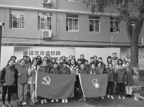 记者 曹莹 日前,浦东新区生态环境局工作人员与周家渡上南一村及上南二村小学等共建单位携手助力,共同开展“植此青绿,同守‘廉’心”植树节活动,在社区廉洁墙下种上“清廉树”,为社区增添生态底色,让清廉教育深入“童”心。 活动现场,各单位的党员志愿者与上南二村小学的少先队“小林长”一起合作,手持铁锹,挖坑、扶苗、培土、浇水……经过一个多小时的辛勤劳动,一棵棵“清廉”树整齐地在廉洁墙周围迎风飘扬,廉洁墙上的廉洁宣传标语也吸引了孩子们驻足观看,引发了热烈讨论。“小林长”们表示,将用实际行动传播廉洁正能量,并且愿意成为此处绿化责任包干地的守护者,定期参与巡逻,捡拾绿化带烟蒂、垃圾等绿化区域维护的工作,做生态文明的传播者、实践者和推动者。