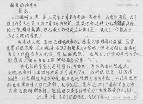 记者 范彦萍 在河南安阳市殷墟博物馆新馆开馆之际,一封写于20多年前的青春书信浮出水面。近日,展览策展人与书信作者、昔日的上海高中生、今日的在职公务员王寅接上了头。 欣喜书信被收藏 21年前,一位名叫王寅的上海高中生向当年主持殷墟考古发掘工作的著名学者杨锡璋寄去了一封信,和这位长者聊一聊自己对历史文化的热爱,也寻求对方对未来方向的建议。 21年后,如今在青浦农工党工作的85后姑娘王寅意外“出圈”了。“这封信是不是你写的?你知道吗?媒体都在找你。”日前,王寅昔日在华师大附属东昌中学的语文老师找到她,她才知道自己当年写给杨爷爷的信竟然成为新馆的一件展品,且经媒体报道后上了热搜。 当接到高中语文老师的来电时,她还没看新闻,也不知道很多人已经读了这封信。她兴奋地将这件新鲜事告诉了父母,“我小时候的信被人家博物馆收藏了。” 事后,还有同事对她说,“我能看出来是你写的。这么多年了,你的文风几乎没有变。” 王寅告诉记者,其实这么多年过去了,自己早已不记得当初写了什么内容。她到网上翻出当年那封信的照片时,自己也忍不住笑了,“上面有涂改的痕迹。因为我写信的时候是高二(7)班,寄出去的时候已经是高三(11)班了。随信一起寄过去的还有一篇获奖征文。我还用了当年时髦的黄色记事贴,给我的这封信画重点,向杨爷爷提问,‘学历史,真的是寂寞的追求知识吗?’” 王寅与杨老的缘分始于一次征文比赛。当年,她去上海博物馆“中国历史玺印馆”参观时,一眼就看中了一枚“真水无香”之印。“没有理由,就是有一种一眼万年的感觉,有一种被中华文化血脉觉醒击中的感觉。仿佛有人在对我说,‘好的,就是它了’。正如我文章中所写的,我们传承的不仅是文物,更是先人驰神运思的智慧和他们寄情沟壑的人生境界。” 谈及写下这篇作文的感受时,王寅告诉记者,“对于一名即将参加高考的高中生来说,平时的学业比较繁重。在博物馆这样安安静静的环境里,没有压力,可以用平和的心情参观文物,我是抱着仰望的心态的。我在赞叹中华深厚文化根基的同时,也感叹上博人慧眼识章。” 洋洋洒洒的两页作文,也打动了当年的语文老师,看毕作文,她也去参观了“真水无香”印章。 回忆与杨老的不解之缘 后来,这篇作文获得了当年“我看博物馆”中学生征文比赛高中组的一等奖。随后,上海博物馆特意安排获奖学生远赴河南安阳,观摩了解殷墟考古的现场工作。 “我之前只是参观过上海的文物,那次能近距离地观摩考古现场,对一名中学生来说堪称是迈进了一个‘新世界’。”王寅回忆说,当初他们参观的是社科院考古所安阳工作站的陈列室,还没有现在的殷墟博物馆呢。也正是在那里,她见到了杨锡璋爷爷。对方热情接待了参观的学生,为大家细细讲解每一件文物珍品的来历。 杨爷爷眼中的光芒给当时还在读高中的这个小女孩留下了深刻的印象,王寅回忆说,“杨爷爷和蔼可亲,谦逊有礼,和我们一群孩子分享对文物的热爱。他兴高采烈地讲述中华民族源远流长的历史文明,他对文物真正的懂得和珍惜深深打动了我。” 有一个细节让王寅十分动容,杨爷爷平时不喜欢开空调,专门为孩子们而开,“他关空调时的表情我到现在还记得。我们学生一走,他立马就说‘关了’。” 回到上海之后,王寅在语文老师冯齐的鼓励下,写下了一封情真意切的书信表达了自己对传统文化的热爱,并附上了获奖的征文,一同寄给了杨爷爷。很快,她就收到了杨爷爷的亲笔回信,信中老人家不仅回答了王寅提出的疑问,还鼓励王寅要持续学习中华传统文化,热情拥抱自己的理想。 看毕被晒到网上的这封信和作文,网友们的点评纷至沓来。网友“木棉”评价说,“这封信具有穿越时空的感人力量!这力量美好又干净,又像清香的空气,沁人心脾!这就是美好少年的力量!” 刷着这些评论,王寅莞尔一笑,默默地点了一个又一个赞,“想必这些点评者自己内心也藏着一颗少年之心。”当记者问她会不会受邀故地重游时,她表示,“现在这件事太热了,我生怕会给博物馆带来麻烦,等热度降低后,未来我会悄悄地去打卡。”