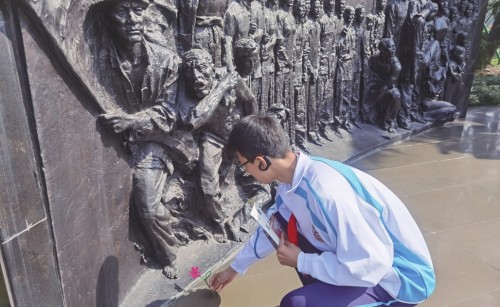 又是一年春草绿,又到一年清明时。为广泛开展“扣好人生第一粒扣子”主题教育实践活动,徐汇区以“我们的节日·清明”为契机,在全区中小学校集中开展“传承红色基因”教育活动,引导全区中小学生走进烈士陵园、纪念场所,开展祭扫献花、瞻仰宣誓等多种实践活动,以实际行动传承红色基因、赓续精神谱系。 4月1日,由徐汇区委宣传部(文明办)、徐汇区教育局、徐汇团区委、上海市龙华烈士陵园等单位联合主办的“龙华魂——传承红色基因 践行初心使命”2024年徐汇区未成年人“清明祭英烈”主题活动,在上海市龙华烈士陵园隆重举行。 “这样的红色教育形式很新颖。”现场参与活动的一位同学一边在做手工版的“地下工作者的家”,一边告诉记者。 记者 范彦萍 制作扭扭棒花 装扮地下工作者的“家” 一早,来自徐汇区上海市南洋模范初级中学、龙华小学等校的130余名学生,在学校老师的带领下,身着整洁的校服,佩戴着鲜艳的红领巾,迈着整齐的步伐走进庄严肃穆、桃花盛开的龙华烈士陵园,参加徐汇区组织开展的“清明祭英烈”主题活动。 上午8点30分,在无名烈士墓广场上,同学们手持一束束鲜花和一张张表达心声的“留言寄语”卡,排列成整齐方队,伫立在烈士纪念碑前,参加庄严而隆重的升旗、祭扫仪式。当鲜艳的五星红旗伴随着中华人民共和国国歌冉冉升起,同学们面向国旗敬礼,沐浴着春风,感恩幸福生活,体悟国旗下成长。礼兵抬护着花篮,以庄严的仪式向革命烈士献上了徐汇区中小学校师生敬献的花篮——寄语“革命烈士永垂不朽”,同学们一起向革命烈士三鞠躬默哀,礼敬先烈先辈,寄托缅怀之情。随后,同学们又一一走近烈士纪念碑,将手中的鲜花双手敬献给革命烈士。 祭扫仪式结束后,130余名同学分成两组,分别参加室内红色讲堂课和户外雕塑美育课。在龙华烈士纪念馆一楼红色讲堂内,讲解员杜江老师为同学们带来了一堂《密战英雄》红色绘本研学课,她以地下工作者的工作内容为线索,串联起陈为人、电台三烈士等龙华英烈事迹。杜老师娓娓道来英烈的故事,让同学们了解当年逆流而上、暗夜逐光的中共地下工作者的探索与奋斗历程。现场,还有手工活动,同学们为地下工作者空旷的“家”装扮各种家具和生活用品。 纪念馆讲解员周芸老师带领另外一组同学走向户外,围绕研学课程《丹心铸魂》,重点以“无名烈士墓”“五卅惨案”雕塑为例,着重介绍龙华烈士陵园户外雕塑,解读雕塑作品背后的创作主旨、历史背景等,引导同学们关注陵园户外雕塑群,将历史事件、先烈故事与雕塑美育融合了解。 现场,有位13岁的个子有1.9米的男同学显得格外引人注目。他用扭扭棒制作了一朵花,放在了烈士雕塑前。 书写“留言寄语”卡 学生与烈士跨时空“对话” 在“清明祭英烈”主题活动背景板前,同学们将所感所悟,写在“留言寄语”卡上,并仔细地一一张贴。陈悦昕同学在“留言寄语”卡上说:“青山藏忠魂,清明祭英烈,缅怀先人,致敬英雄。纪念为革命献身的烈士,如果不是你们的牺牲,就不会有我们今天的幸福生活!……向革命先烈致敬!”赵诗茵同学说:“英烈们虽然离开了我们,但他们的精神永远活在我们心中。我们要时刻铭记他们的伟大事迹,传承他们的精神。”130多张“留言寄语”卡片布满了主题活动背景板,一张张卡片载着一句句真情跨越时空“对话”,以表达对革命先烈的崇高敬意和深深缅怀之情。 今年,是新中国成立75周年,也是《爱国主义教育法》公布施行第一年。据悉,每年清明节期间,徐汇区都会组织全区中小学校利用一周左右的时间,集中开展未成年人“清明祭英烈”主题活动。通过校内与校外联动,充分利用区域内爱国主义教育基地等红色资源,推进落实思政课一体化建设,打造思政大课堂,广泛开展“传承红色基因”教育活动,引导全区中小学校不断深化党史、新中国史、改革开放史、社会主义发展史教育,培育和践行社会主义核心价值观。