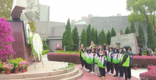 为缅怀革命先烈,铭记革命历史,进一步加强学生爱国主义教育和革命传统教育,沪上各校师生通过敬献花篮、瞻仰纪念馆、祭扫烈士墓等各种方式缅怀革命先烈、追寻红色记忆,引导中小学生厚植家国情怀、传承革命精神、弘扬爱国主义。 记者 曹莹 赴纪念馆、烈士陵园里开展主题祭扫 3月28日,崇明圆沙小学师生代表来到竖河镇大烧杀遗址,参加清明节祭扫活动。师生们观看了纪念馆中留存的大量历史图文资料和历史遗迹,了解了崇明人民奋起反抗侵略者的英雄事迹,深受震撼,师生们怀着敬意向烈士敬礼,默哀。参观结束后,学生们表示将铭记历史,传承革命先烈精神,珍惜现在的美好生活,努力学习,建设家乡,报效祖国。 4月1日,学校举行主题升旗仪式,通过国旗下讲话号召学生们怀着崇敬的心情缅怀革命先烈,继承革命传统,以立志争做中华民族复兴的担当者来向革命先烈致敬。各班级开展了以清明祭英烈为主题的班会课,让学生们了解清明节习俗,培养学习革命先烈不畏艰难、勇敢向前的革命精神。 4月2日上午,沪太一小师生代表与甘泉路街道新时代文明实践分中心、甘泉路街道团工委、甘泉路街道妇联代表一起前往嘉定烈士陵园开展“清明祭英烈”主题祭扫活动。 在庄严巍峨的革命烈士纪念碑前,全体人员整齐列队。沪太一小学生佩戴着红领巾,排着整齐的队伍在烈士陵墓前肃立、默哀。在庄严的仪式中,沪太一小师生和甘泉路街道的老师们向革命烈士鞠躬、敬礼,敬献鲜花、花圈。朵朵鲜花寄托着大家深深的哀思和对革命先烈的无限敬仰和深切缅怀。 接着,大家来到嘉定革命烈士史料陈列馆,陈列馆重点展示了有关解放战争时期的作战情况与烈士们的珍贵史料,大家在一幅幅历史图片、一件件实物模型前驻足。大家听得非常投入,这些无言的史料记载了先烈们的生平,让人动容,受益良多。 校园开展打卡活动学习清明习俗 上实东滩学校在4月1日上午,举行了“缅怀革命先烈 传承红色基因”主题升旗仪式。各中队开展主题队课《清明追思,弘扬孝道》,学习了清明节的历史渊源和文化内涵,理解要将孝道融入生活,传承传统美德。 该校还组织开展了“清明习俗我参加”“清明时节祭先烈,红色地标我打卡”活动,引导学生参与扫墓祭祖等习俗,打卡红色纪念场所、地标物等,体悟传统文化魅力,追寻红色记忆,传承红色基因。 奉贤区实验小学的党员同志、团员青年和少先队员们拿起皱纹纸等材料亲手制作敬献烈士的纸花。一朵朵寄托着哀思的纸花在大家手中悄然绽放,大家齐心协力制作出100多朵纸花,并将这纸花汇聚成一个花圈。小小的纸花承载着大家对革命烈士最真切的崇敬,寄托对烈士的无限哀思。书法教师提笔书写挽联,表达全校师生对革命烈士的敬意与怀念。 浦东新区育童小学运用学校新添置的新媒体“朗读亭”,开展以“缅怀革命先烈,重温红色历史”为主题的清明诗歌诵读活动。结合学校“全员导师制”推进,每位党员带领自己的一至两名结对学生,于3月下旬至4月上旬期间,至“朗诵亭”自选一段红色诗文,师生合作朗诵并录制成视(音)频,通过文字与声音来表达对革命先烈最真实、最深切的问候与追思。