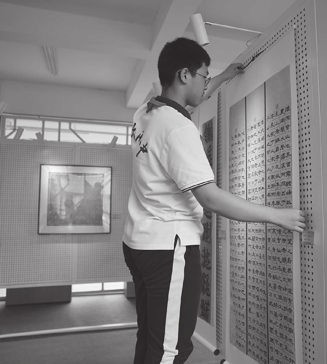 记者 刘春霞 图 吴恺 上午10点多,德富中学一楼的“艺术之光”展厅内,同学们三五成群观赏着书法作品,40多幅隶书、行书和草书等,100余件书签、扇子、冰箱贴等书法文创……这些都是八年级的陈奕霖同学创作的,将持续展览一个月。记者在现场了解到,作为交大附中附属嘉定德富中学美育节的重要活动之一,陈奕霖同学的书法展,是该校首次举办的学生个人书法作品展。难能可贵的是,此次展览从策划到创作、再到布展,陈奕霖都是亲力亲为。 陈奕霖对记者坦言,今年1月中旬接到学校通知时自己很激动,但同时时间也很紧张,要在三个月时间内创作并完成布展,还不能影响学习。陈奕霖开始对自己的时间“精打细算”:提高学习效率;平时碎片时间用来创作文创周边的内容;周六的整天时间就到书法老师工作室创作大作品……整个筹备过程中,陈奕霖没有让学习受到丝毫影响。 刚开始练书法时,陈奕霖的字并不算突出,但最近这一年他的“功力”却是突飞猛进。在美术老师赵金洋看来,陈奕霖的这种进步得益于他的专注和执着。 这次展览中,有一幅《百福图》,是由100个篆书“福”字组成一个大的楷书“福”字,由于每个篆书的字体都非常小,稍有不慎就会功亏一篑。为了完成这幅作品,陈奕霖写了三遍。 “写书法是锻炼耐心的过程。”陈奕霖总结道,初学书法犹如跨越高山,但随着锲而不舍的练习,慢慢就养成了良好的书写习惯,也培养了自己的细心、耐心和恒心。 陈奕霖的个人书法作品展开幕后,在学校里引领了一股学习书法的小风尚。得知陈奕霖举办个人展,八(2)班的同学都很震惊。黄潇湉同学坦言,自己也学过几年书法,但却没有坚持下来,“感觉(我)缺了他对艺术的那种认真和专注,以后我会多和他交流一下书法心得。”张嘉阳则直接把陈奕霖当做了偶像:“他写了这么多书法作品,功课却一点也没落下。” “兴趣是孩子最好的老师,我们一直鼓励并支持孩子去发展自己的爱好。看到陈奕霖同学与书法结缘,我们为他感到高兴。”交大附中附属嘉定德富中学校长王冰说,学校一直致力于培养孩子的兴趣,发展孩子的特长,让每个孩子都能张扬个性。此次展览不仅是书法作品展示,也为学校艺术与生活融合发展提供了良好的平台。学校将以此展为契机,深入推进校园美育浸润行动,全面提升学生文化理解、审美感知、艺术表现、创意实践等核心素养,让校园成为孩子们成长的舞台。