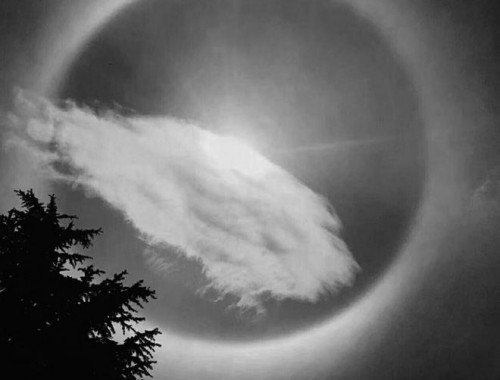 答:作为一种常见的大气光学现象,它的形成与高云有关。高云一般由微小的冰晶组成,这些冰晶相当于三棱镜,当太阳光通过高云中蕴含的冰晶时,经过两次折射、反射,阳光便被分解成了红、黄、绿、紫等多种颜色,便形成了日晕。由于蕴含冰晶的高云一般是雷雨天气入侵的“先锋”,所以日晕的出现,往往预兆着天气在短时间内便会转坏。故民谚有“日晕三更雨,月晕午时风”之说。