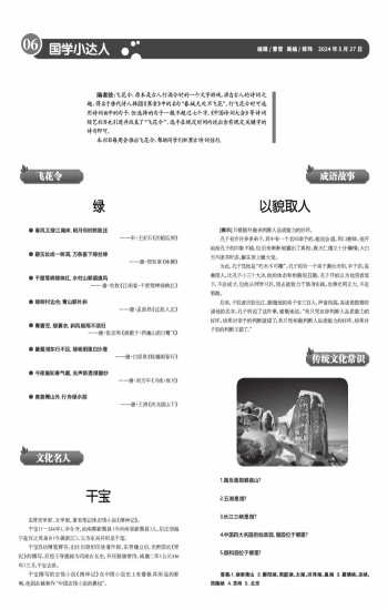 干宝撰写的志怪小说《搜神记》在中国小说史上有着极其深远的影响,他因此被称作“中国志怪小说的鼻祖”。