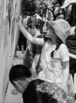 记者 曹莹 近日,闵行区古美街道举行了“国旗下成长”青少年升国旗暨爱国宣讲主题活动,创意墙绘、淘趣市集、爱心捐衣等特色项目也在古美路街道逐一亮相。 淘趣市集里人头攒动,青少年成为小小的摊主和购物达人,体验买卖过程,学习如何与人交流、协商和决策。 在平阳二村小区顾戴路约20米的外墙上,一个个有活力的儿童、少年形象跃然而上,围绕在“美好青春在闵行”的身旁,色彩缤纷,夺人眼球。青少年以墙面为画布,一笔一画勾勒并上色,亲手创作出一面充满生机和创意的艺术墙绘。 古美路街道团工委副书记陈振堃介绍:“恰逢青春闵行文化艺术季之艺术墙绘专场,我们邀请青少年参与创作。这个崭新的墙面一方面美化了街角,另一方面让他们的创作能够被更多人看到。这片自由的创作天地里,青少年可以尽情地发挥想象力,用丰富多彩的颜色和独特的形式表达自己的内心世界和对美的追求。”