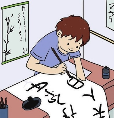 上海市浦东新区南汇外国语小学四(5)中队 叶骐豪 指导老师:乔晓青 今天是星期六,早上起床,窗外晴空万里,万里无云。太阳公公发出耀眼的光芒,把大地照得金灿灿,我的心情也变得和它一样灿烂。 吃完早饭,我和爸爸妈妈一起去了爷爷奶奶家。我看到奶奶在书桌上写毛笔字,凑近一看,奶奶写的字刚健有力,漂亮极了。我连忙问奶奶:“您能教我写毛笔字吗?”奶奶欣然答应。 “那我们开始写毛笔字吧!”奶奶边说边帮我找了一支笔,拿了一张宣纸。奶奶说:“今天我们从最基础的画横线开始。”我心想:画横线简直就是如来佛捉孙大圣——易如反掌。奶奶握住我的手写了两遍,接下来就让我自己写。哈哈,我终于可以自己写啦。我轻轻地按下笔,往右画,可是手不听使唤,一直在抖。画的横线像一条条弯弯曲曲的蚯蚓。我按照奶奶的方法,一遍又一遍地继续写。 不知不觉中两个小时过去了,我终于能画一条直线了。 哎,看似简单,实则很难啊。但我相信:坚持就能成功。