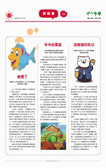 杨浦区二联小学 三(2)中队 戴谦儒 指导老师:詹雯 “喵~”小明家架子上的招财猫储蓄罐偷偷地伸了个懒腰。它看见主人小明正在午睡,便决定,趁小主人午睡时,溜出去买他最爱吃的甜甜圈。 招财猫走到大门口,发现门把手很高,够不到,它想:我要怎么开门呢?忽然,它看到旁边有一个空的大箱子。有了!它使出吃奶的力气,把大箱子搬到门口,然后爬到桌上拿了钥匙,接着跳到箱子上,把钥匙插进锁孔,打开了门锁。“哦唷”招财猫那胖胖的身子摇摇晃晃的,竟掉了下去。幸好门旁的塑料袋钓住了它,招财猫拍了拍自己的胸口,想:真是有惊无险啊! 它走啊走,逛啊逛,来到了十字路口。它刚踩上斑马线,一辆汽车冲了过来,招财猫赶紧俯下身子,躲到了车底下。车子从它头顶飞驰而过。哦唷!幸好我躲得快,不然,小命就没了。它赶紧迈开小短腿,跑到了马路对面。 终于它来到了心心念念的甜甜圈面包店。它看到“甜甜圈每个10元钱”。招财猫一遍念着,一边美滋滋地想:我的钱够买好几个了。它忙叮叮当当地从肚子里摇出了10元钱,把银币放在柜台上,买了它最爱吃的巧克力甜甜圈。 吃完甜甜圈,招财猫心满意足地摸了摸自己圆滚滚的大肚皮。算算时间,小主人快醒了,它赶紧迈开小短腿往家赶去。