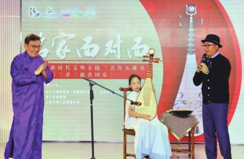 日前,来自全市16个区的艺术特长生代表先后来到位于普陀区青少年教育活动中心的全国第八届中小学生艺术展演舞台,尽情展示校园美育教育在民乐、舞蹈、戏曲、朗诵等各类艺术表现形式上的丰硕成果。据介绍,今年共有393个艺术表演类节目、364件艺术作品、325项中小学美育改革创新优秀成果入围市级展演活动。实际上,为构建“大美育”思维,上海各小学开展了丰富多彩、形式多样的美育课程和美育实践活动,以美育人、以美化人、以美培元。 记者 曹莹 金山小学:水墨里书写国画魅力 在展演活动开幕式外场,金山小学“水墨天地”项目以展示和现场互动的形式进行了交流、探讨。同时,也代表金山区传递美育教育的理念与思考。 “水墨天地”课程在学校每周一快乐活动日开展,旨在培养学生对生活的观察力和审美能力,体验水墨韵味,弘扬传统文化。在学校开展的文化节和相关主题活动时都展示过国画作品。项目组曾参加金山区第十八轮青少年民族技艺培训暨张堰镇、高新区“一校一品”展示活动,均得到好评。 现场布置环节中,美术组的老师和学生精心策划现场的作品摆放,以丰富的作品形式展现给参观的师生和群众。经过师生别出心裁的布置,学生的国画作品显得熠熠生辉,展位充满氛围感。 互动环节正式开始,展位吸引了很多家长、孩子和附近居民前来参观,大家纷纷驻足,赞叹学生的作品。“水墨天地”还向大家提供了毛笔、国画颜料、扇子、卷轴等各类作画材料,开展了现场的体验和互动。 绿晨小学:沪剧里感受海派雅韵 沪剧,这一承载着上海记忆与艺术情怀的瑰宝,以其独特的韵味讲述着上海的故事,唱出了生活的甜酸苦辣。日前,绿晨小学二年级的师生怀揣着对传统文化的无限憧憬,来到了上海沪剧院,开启了一场探寻沪剧艺术之美的文化之旅。 师生在沪剧传习馆观赏了《红灯记》《芦荡火种》等沪剧经典剧目的精彩片段,还来到排练室近距离观摩了沪剧演员的排练。 演员用独特的曲调与唱腔,演绎着悲欢离合。每一个动作、每一句唱词都饱含着深情与韵味,让在场的人都沉醉其中,感受到了属于沪剧的独特魅力。 建襄小学:古韵悠扬,弦动心声 日前,“名家面对面”——徐汇区新时代文明实践“美育大课堂”第四季第三讲《趣谈国乐》走进了建襄小学,特邀著名琵琶演奏家、音乐教育家汤良兴,带领同学们感受江南丝竹的魅力,领略音符中的灵动与深情。现场,汤良兴分享了琵琶演奏背后的故事,探寻他指尖下那些来自音乐深处的动人旋律,揭开音符中蕴含的情感与韵味。身着长衫、手持琵琶的他现场为大家演奏了《忆故人》《酒狂》《六板新弹》曲目。丝竹之音,每一个旋律都如一幅画卷,将艺术中的美妙、情感之间的共鸣展现得淋漓尽致。 长期以来,学校利用地域优势,将“外援”请进校园开展美育教育。书画社团聘请了中国画院的画家老师担任校艺术团指导老师;音乐社团打造了口风琴课堂,设立襄韵合唱团、京剧社和舞蹈社团等,丰富学生的课余生活,拓宽学生的艺术视野,提升学校的艺术教育影响力。