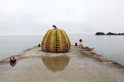 码头换了酒店的巴士,不过15分钟的路程,一只鼎鼎大名的黄南瓜映入眼帘(草间弥生的第一个户外作品)。再走入深处,就是Benesse美术馆所在地。服务员彬彬有礼地带领入住后,我们便迫不及待开始打量这里。入住在这里的客人,可以有特权享受一次夜晚的观展感受,所以晚饭后,我们便慢慢悠悠,一起散步欣赏了几十幅大师的佳作后才枕着濑户内海入睡。