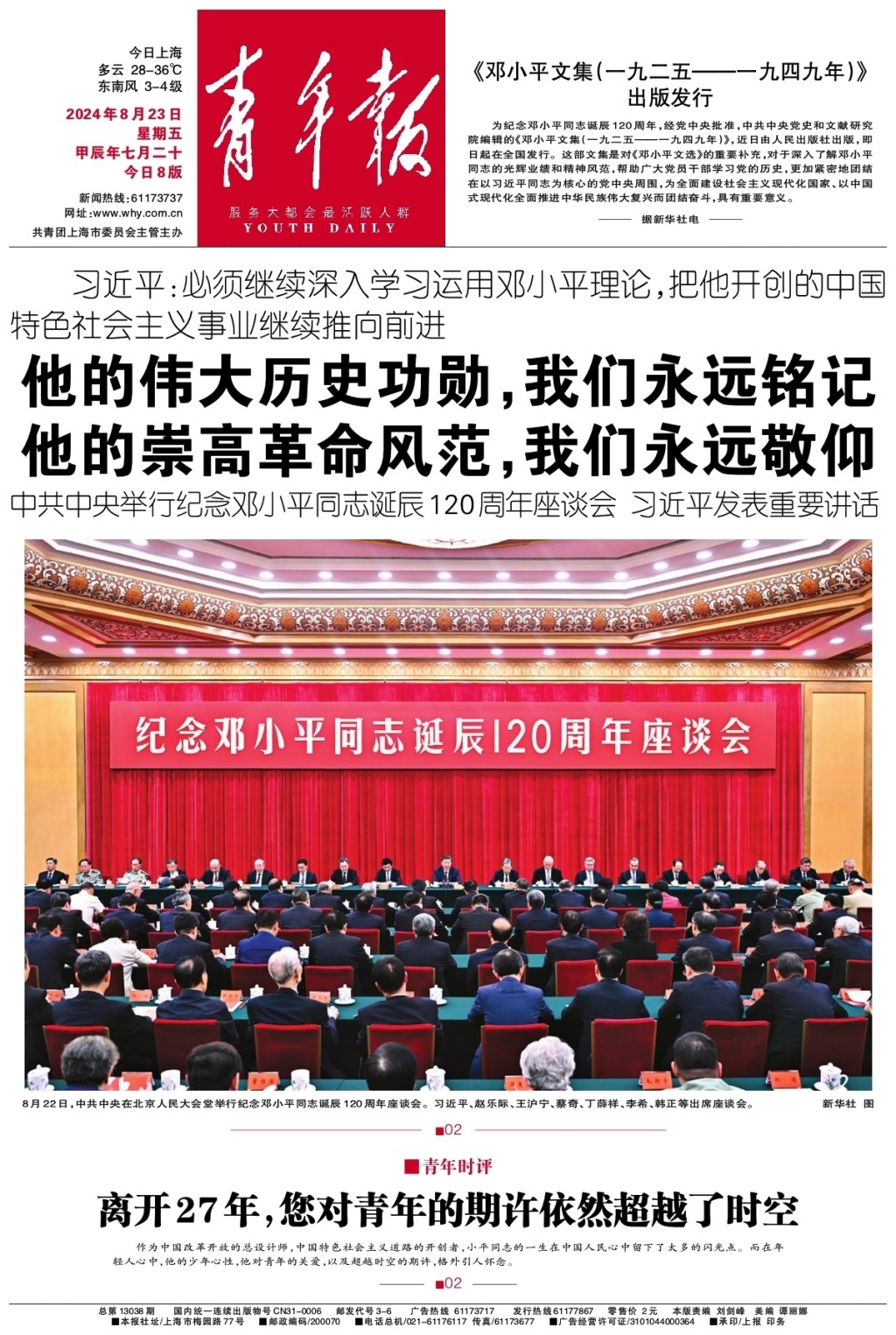 青年时评|让青春在民族复兴征程上焕发光彩 是新时代青年对邓公最好的纪念