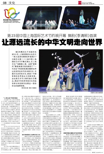 作为亚太地区最具影响力的艺术节之一,中国上海国际艺术节的舞台汇集了中外艺术精粹,开幕式演出舞剧《李清照》正是“上海出品”的一大精品力作。该剧弘扬中国古典美学精粹,同时融入了现代审美和创新理念,通过舞蹈艺术呈现宋代著名女词人李清照的生平及其诗词作品,成功挖掘了中华优秀传统文化的当代价值,不仅展现了李清照所处时代的宋代美学精髓,还突显了文化传承与创新之间的平衡之美。在舞剧中,李清照的形象既温婉又坚毅,体现了她作为一位独立女性、知识分子,对时代对社会的深切关注和责任感。舞剧爱好者张先生在观看后对作品赞不绝口:“这是上海歌舞团出品的又一精品舞剧,我仿佛‘穿越’回宋代,亲身体验了李清照那波澜壮阔的人生。她的才情与坚韧,如同舞台上绽放的‘烟花’,照亮了历史长河。”