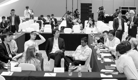 青年科学家们在会上交流讨论。 本版摄影 青年报记者 吴恺