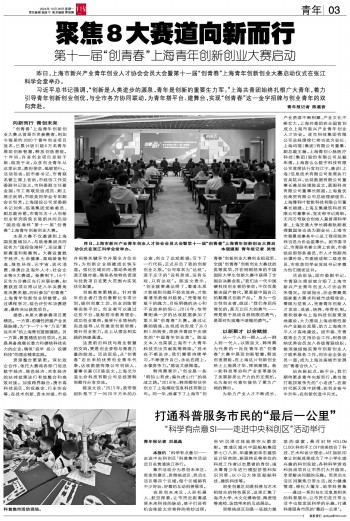 昨日,上海市新兴产业青年创业人才协会会员大会暨第十一届“创青春”上海青年创新创业大赛启动仪式在张江科学会堂举办。