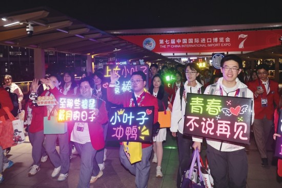 “明年来吗?”一位同学笑着问钱耀东时,他坚定地答道:“当然来!”今年,他刚以二年级“小叶子”的身份重回进博会。回忆起这些天的经历,这位上海工程技术大学的大三学子用“有青春,有陪伴”来概括。他在最为忙碌的国展文创馆工作,为来往的观众们发放礼品,体会到为他人服务的满足感,也交到了许多的朋友,谈及离别,他羞涩地说:“想到今天就是最后一天,其实有点鼻酸。”