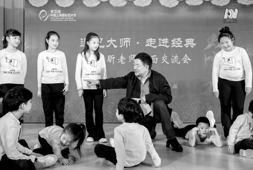 “表演不是靠学,而是要靠悟,你得在舞台上去寻找生命的状态,这就像用铁钎子通炉火,火苗往上一窜,这才叫通透了!”这是国家一级演员、中国戏剧家协会主席濮存昕在北京人艺“上海驻演”期间,指导孩子们排演《正红旗下》片段时,对前来观摩的上戏表演系同学说的话,生动而易懂,让上戏2022级表演系本科的荣妍不住地点头,“我想成为濮老师所说的那块能够完成各种表达的‘材料’,这才是一个演员应有的追求。”