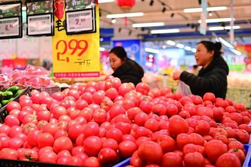 12月9日,消费者在山东省滨州市一家超市选购蔬菜。新华社 图