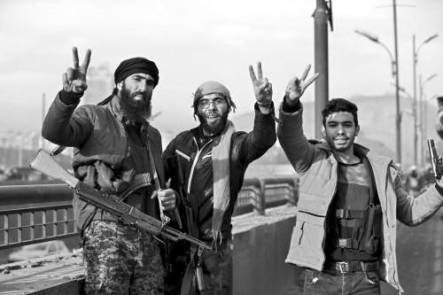 在叙利亚首都大马士革拍摄的武装人员。