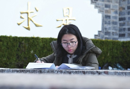 在云南省丽江市一中考点,一名考生在考场外备考。本版除署名外均为新华社图