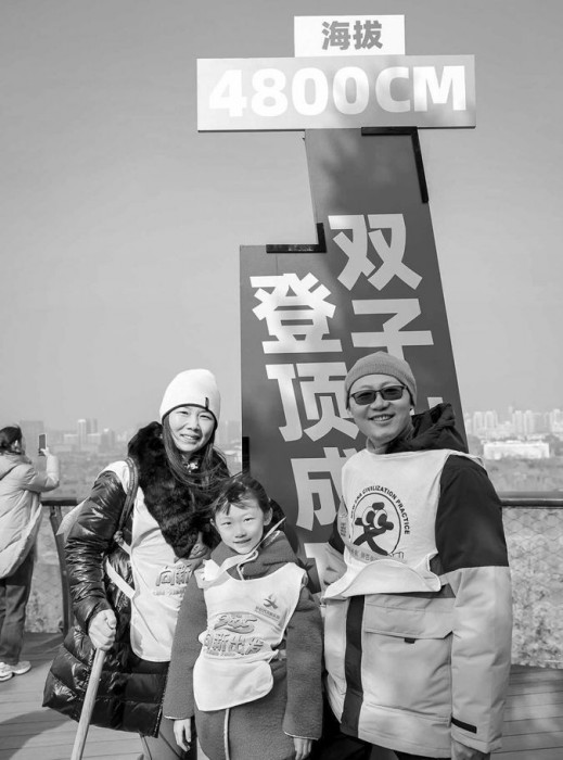 市民登顶后留影。青年报记者 刘晶晶 摄