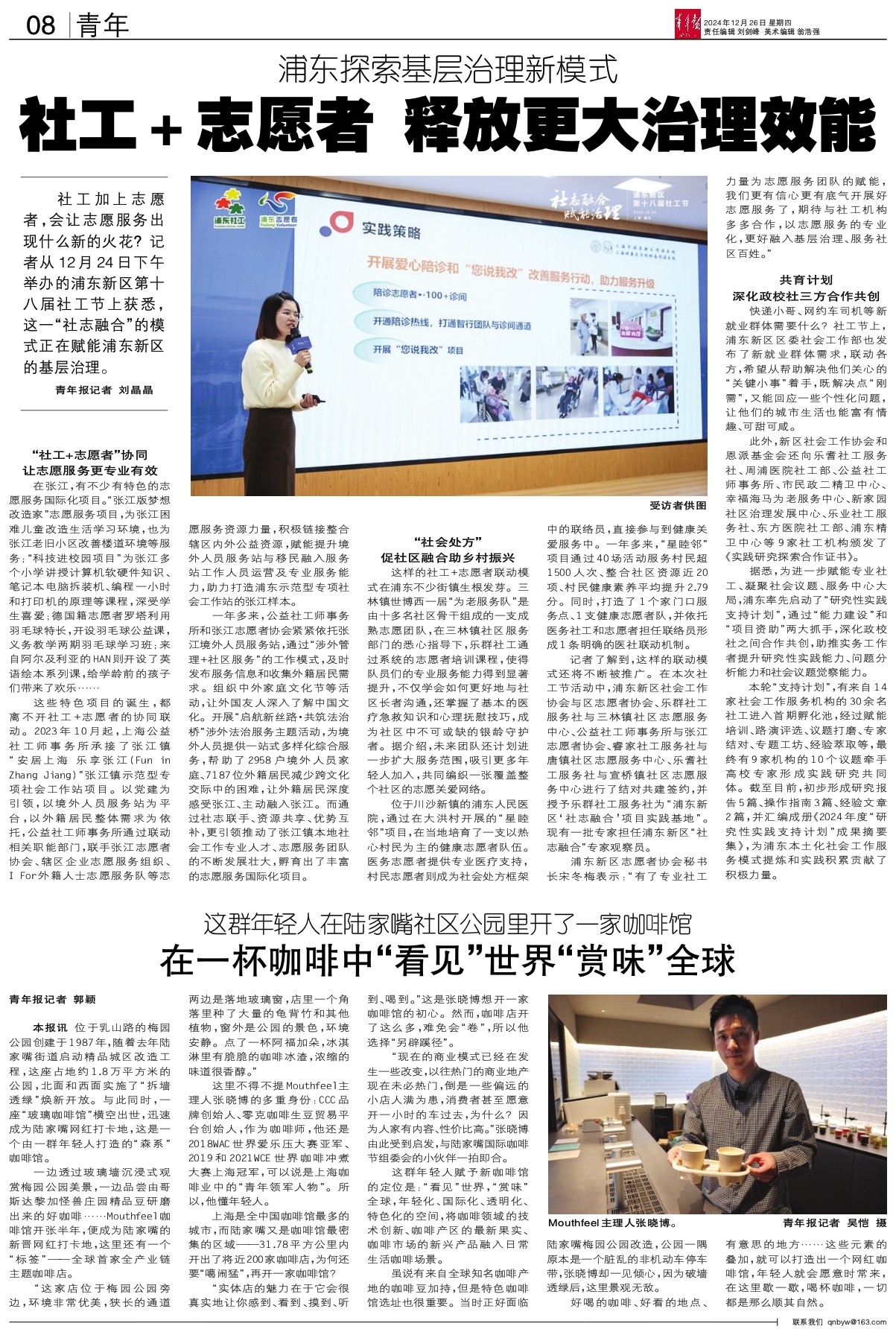 虽说有来自全球知名咖啡产地的咖啡豆加持,但是特色咖啡馆选址也很重要。当时正好面临陆家嘴梅园公园改造,公园一隅原本是一个脏乱的非机动车停车带,张晓博却一见倾心,因为破墙透绿后,这里景观无敌。