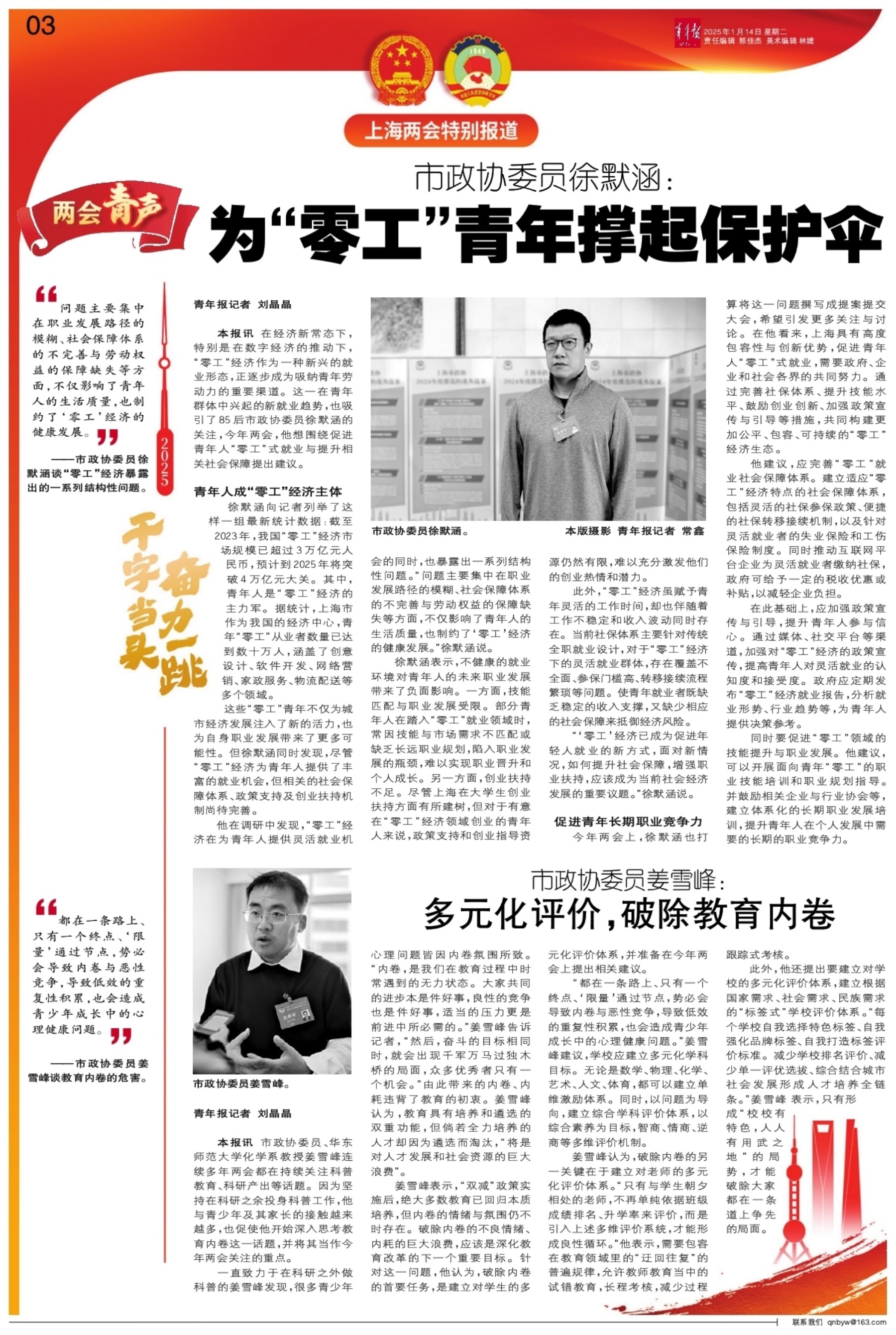 A01 头版 A02 要闻 A03 上海两会特别报道 A04 上海两会特别报道 A05 都市 A06 都市 A07 创·视野 A08 大学