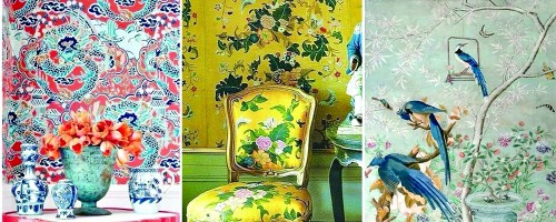 公元14世纪法国的织工在织物中可以精确模仿出吐火的龙、欢快的狮子和凤凰。这在14世纪意大利织物和绘画中极为普遍。18世纪法国的《Happer's Magazine》杂志刊登的艺术评论中,“中国风”一词已经出现。欧洲大陆掀起了一股中国热,丝绸、瓷器、漆器等被大量引进法国,大量“中国风”的纹样成为西方家居空间中最受追捧的中式元素。