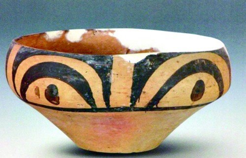 在这两件文物出土前,公元前3900年的仰韶文化中出现的彩陶纹样曾被图案学家雷圭元认为是中国最早的图案纹饰。纹样不拘小节,仿佛有两个眼睛在注视着上苍、大地和人们,所使用的黑色和黄色是对比最强烈且最引人注目的颜色。“可以看出早期的中华民族就是非常蓬勃大气的。”沈沉表示,小小的纹样可以折射中华文明起源时铸就的性格与底色。