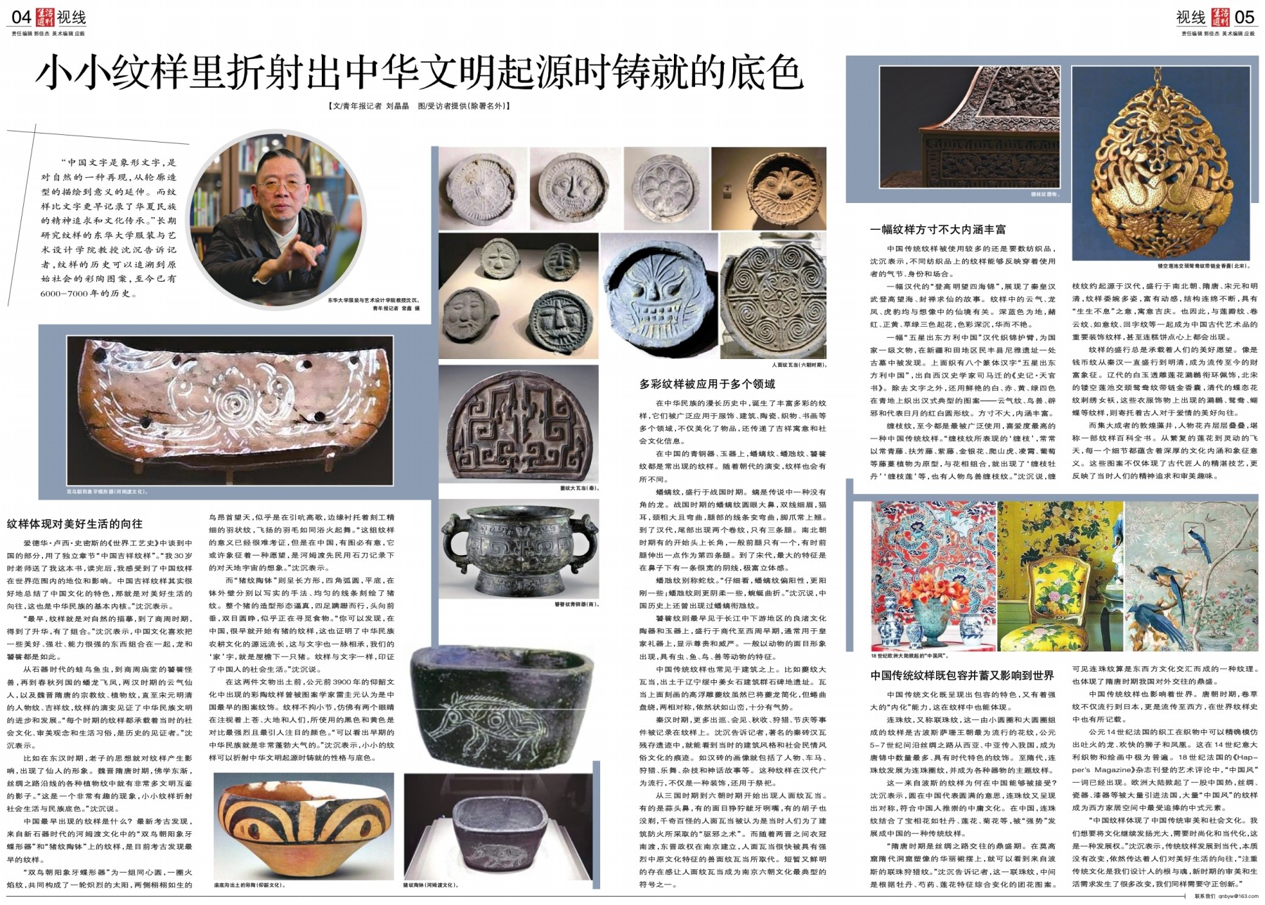 “中国文字是象形文字,是对自然的一种再现,从轮廓造型的描绘到意义的延伸。而纹样比文字更早记录了华夏民族的精神追求和文化传承。”长期研究纹样的东华大学服装与艺术设计学院教授沈沉告诉记者,纹样的历史可以追溯到原始社会的彩陶图案,至今已有6000-7000年的历史。