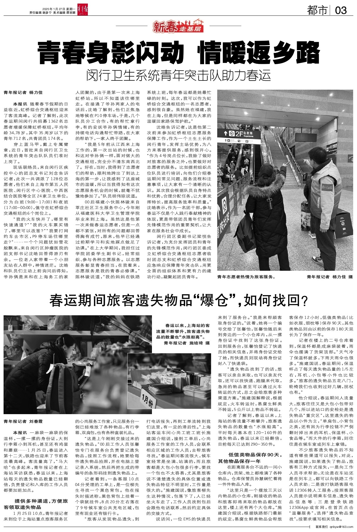 青年志愿者热情为旅客服务。青年报记者 杨力佳 摄