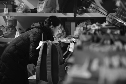 在距离服务台不远的一间小仓库内,货架、地上都堆满了各种物品。仓库保管员孙慧娴忙着将一件件物品入库。