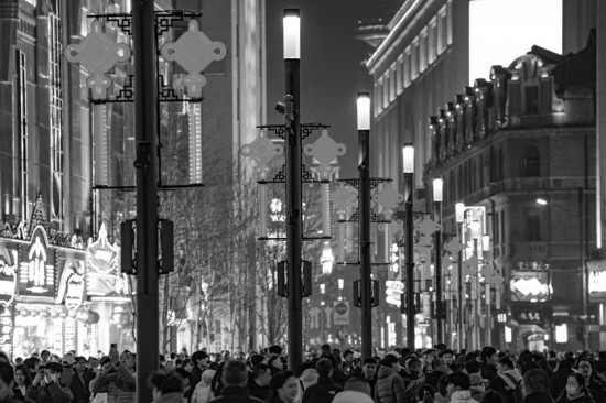 南京路步行街以五星红旗和“中国结”造型的装饰交相辉映,为整条道路披上节日“新装”。本版均为受访者供图