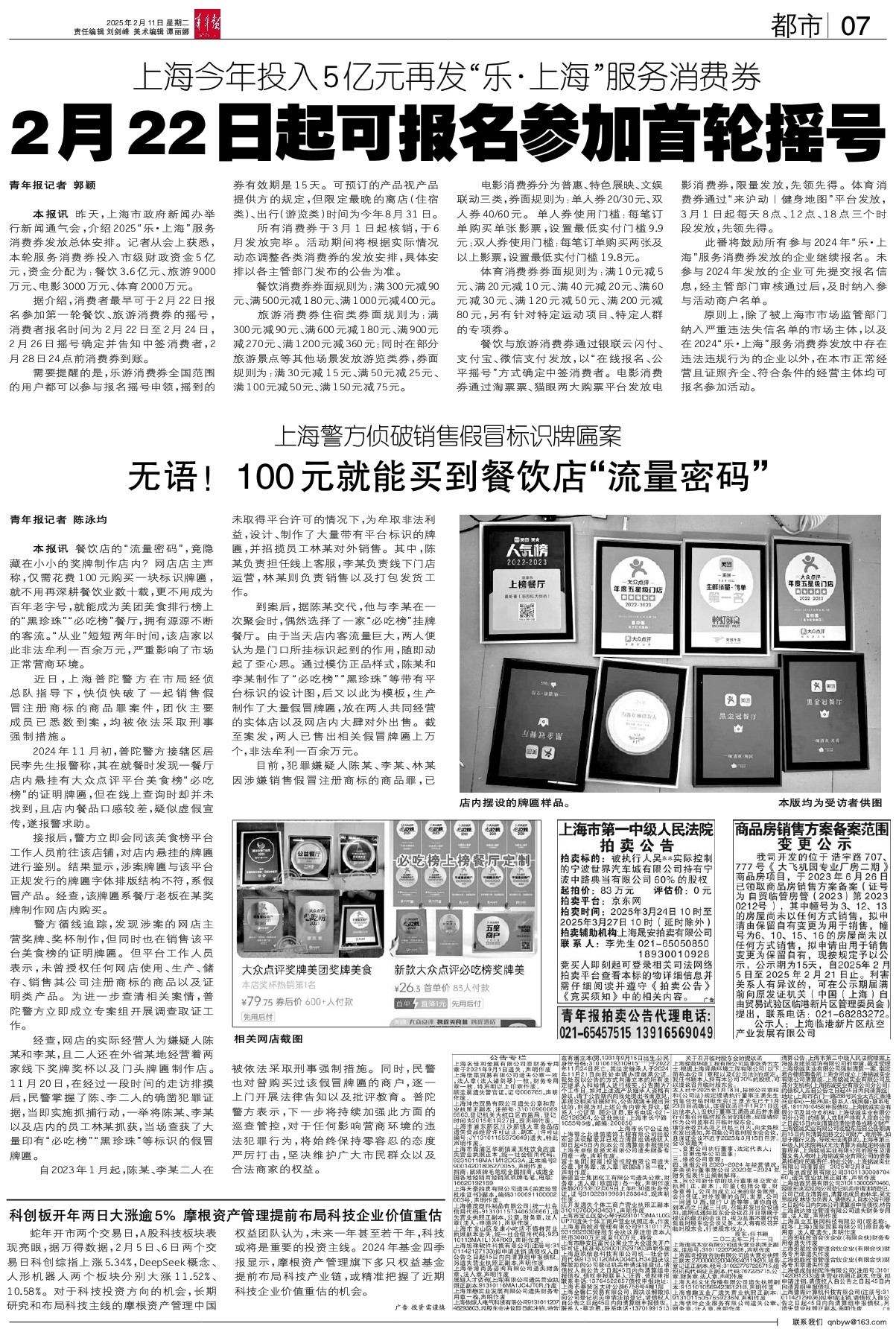 2024年11月初,普陀警方接辖区居民李先生报警称,其在就餐时发现一餐厅店内悬挂有大众点评平台美食榜“必吃榜”的证明牌匾,但在线上查询时却并未找到,且店内餐品口感较差,疑似虚假宣传,遂报警求助。