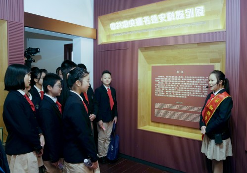 上海市静安区教育学院附属学校的学生在中共中央秘书处机关旧址纪念馆内参观。 新华社 图