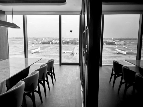 虹桥机场希尔顿酒店可尽览机坪景色。青年报记者 刘春霞 摄
