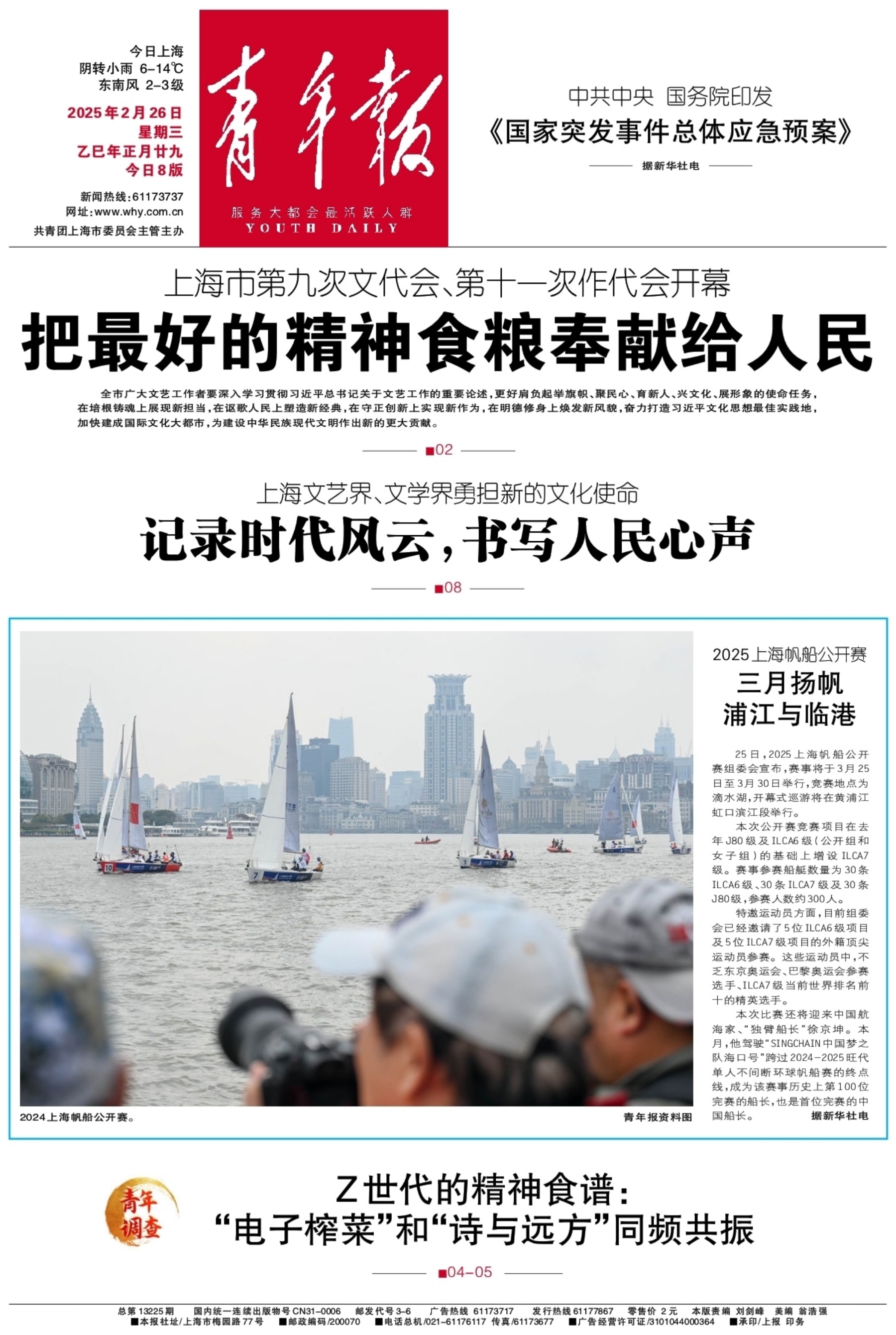 A01 头版 A02 要闻 A03 问政 A04 中国青年网民社会心态调查报告 A06 都市 A07 都市 A08 文化