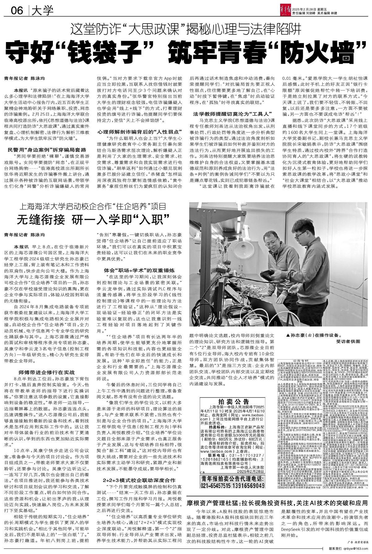 本报讯 “原来骗子的话术背后藏着这么多心理学和法律陷阱!”在上海海洋大学大学生活动中心报告厅内,近五百名学生正聚精会神地聆听关于网络兼职、投资、网恋的诈骗案例。2月25日,上海海洋大学联合临港高校派出所,依托《思想道德与法治》课程共同打造防诈“大思政课”,通过真实案件复盘、心理机制解密、法律行为解析三维教学模式,为大学生筑牢反诈“防火墙”。